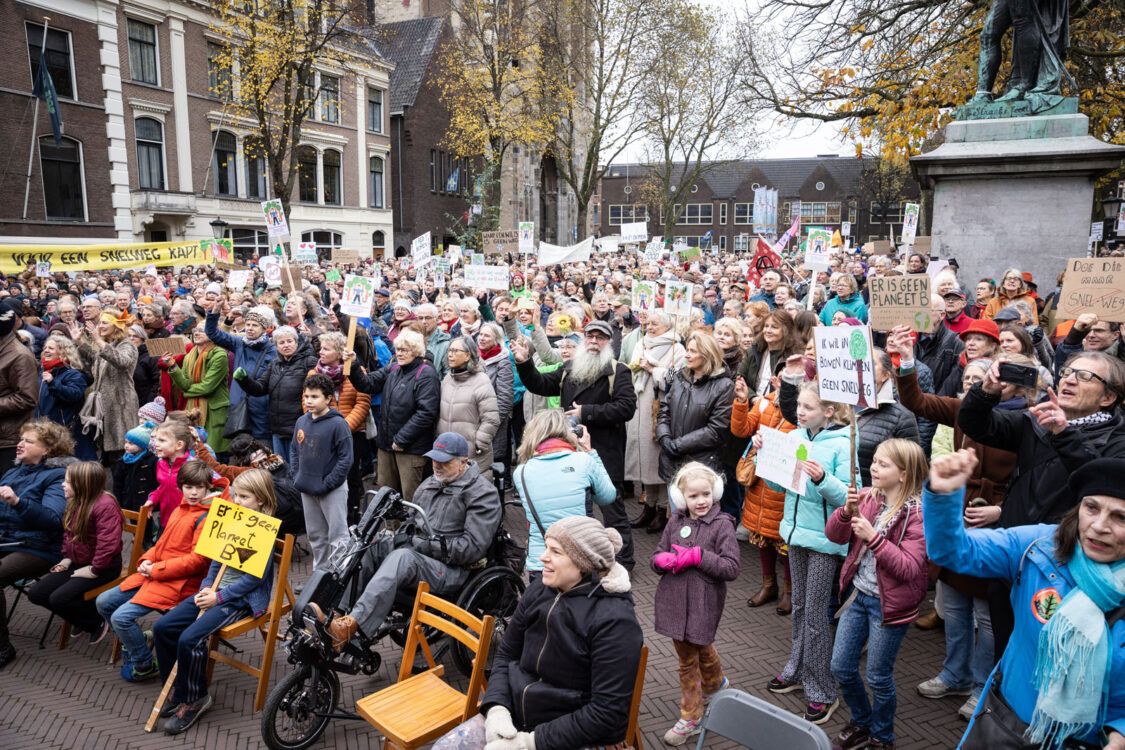 Duizenden mensen protesten op het Domplein in Utrecht tegen de verbreding van de A27