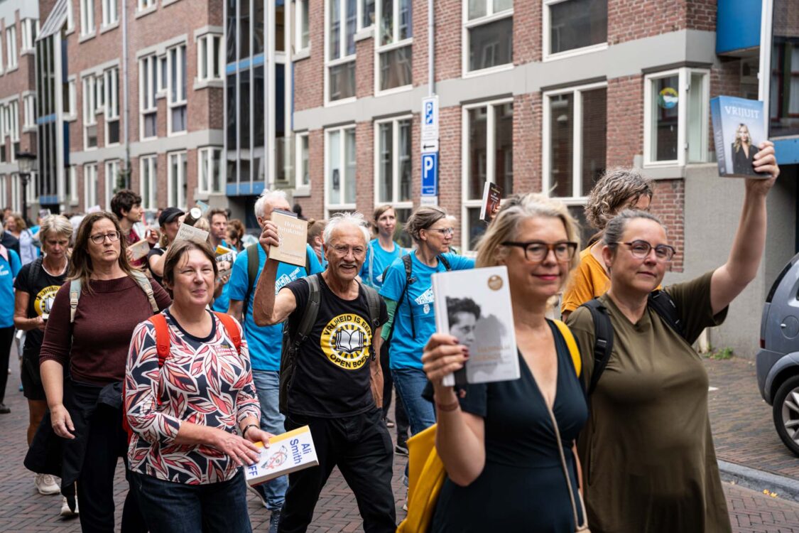 Met een boek in de hand trokken ruim duizend mensen afgelopen weekend door de binnenstad. De Lezersmars is georganiseerd om aandacht te vragen voor het vrije woord, dat wereldwijd steeds meer onder druk staat. De tocht eindigde met speeches op het Domplein, en met twee minuten waarin alle deelnemers massaal uit hun boek voorlezen. Er liepen ook veel schrijvers mee, waaronder Ronald Giphart, Özcan Akyol en Jessica van Geel.