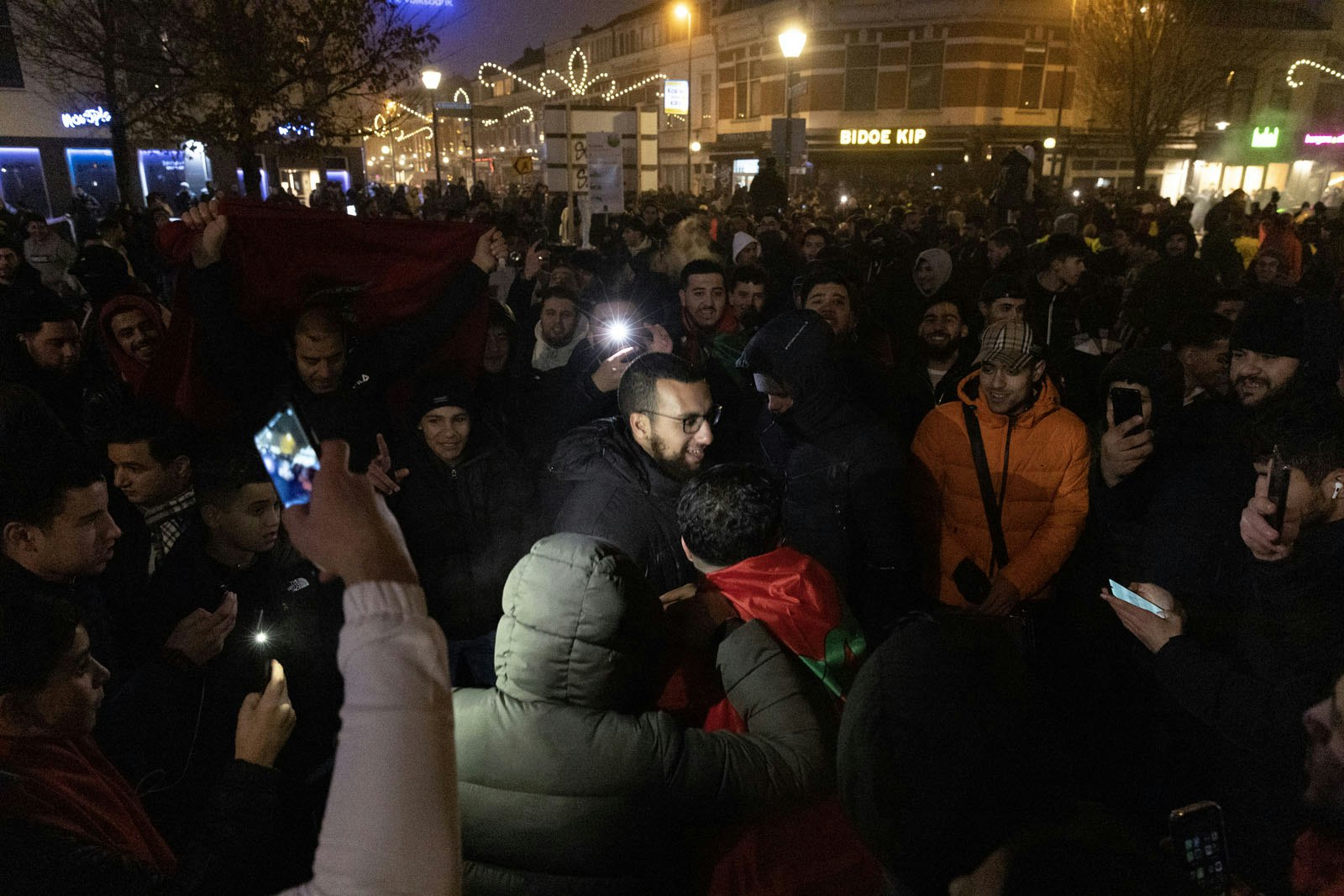Na een spannende kwartfinale tegen Portugal wist het nationale team van Marokko weer te winnen op het WK voetbal in Qatar. Net als tijdens voorgaande overwinningen vieren de supporters weer feest op en rond het Moskeeplein in Utrecht.