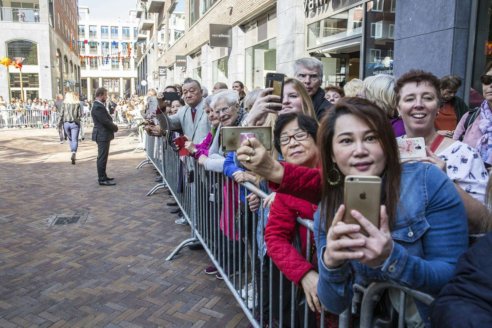 Hierop volgde een rondleiding door het onlangs opgeleverde Leidsche Rijn Centrum. Achter de dranghekken stonden duizenden mensen om de koningin een handje te geven, of ze probeerden een selfie met Máxima te maken.
