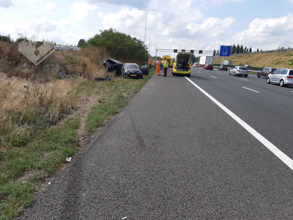 Er was een aanrijding op de A12 tussen twee voertuigen met een gewonde. De politie was bezig met het onderzoek toen meerdere filmende automobilisten voorbij het ongeval reden.