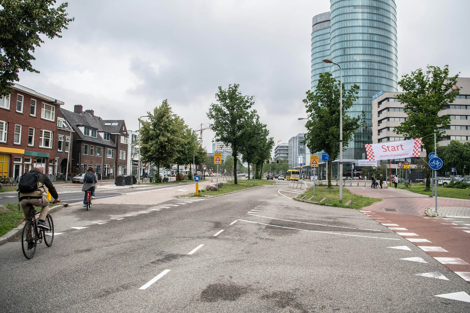 Fietsers op de Croeselaan richting station Utrecht Centraal komen enkele meters voor de oversteek een groot spandoek met ‘Start’ tegen. Vlak voor de oversteek halen ze de finish bij het spandoek ‘Goed gefietst!’. De finish is bewust niet ná de oversteek, om te voorkomen dat fietsers te snel willen oversteken.