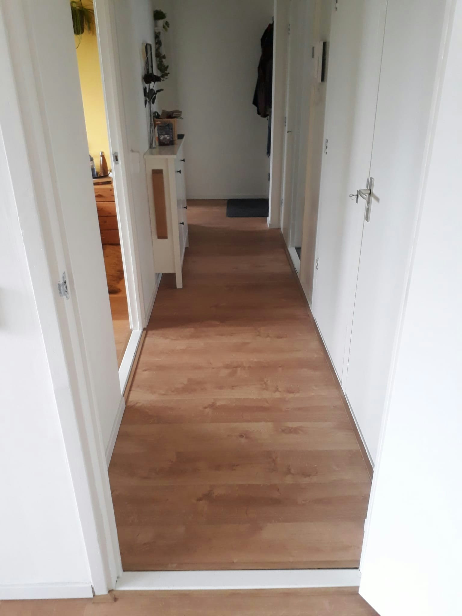 De woningen in het complex werden kaal opgeleverd. “Voordat ik erin kon heb ik er dus een vloer in moeten leggen, met daaronder een ondervloer die aan de gestelde eisen voldeed. Dit alles heb ik netjes afgewerkt met plinten. Ik denk dat het hele pakket zo’n duizend euro heeft gekost.”