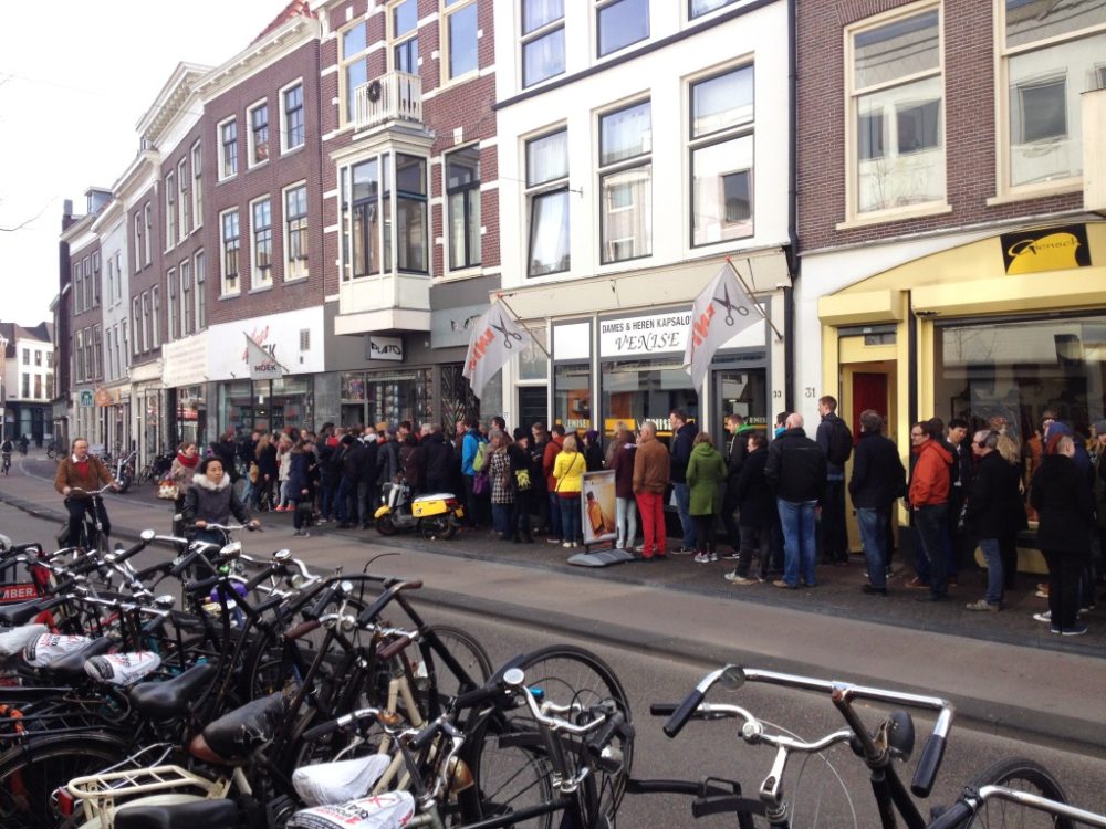 In de overtuiging dat het kopen van kaartjes via ticketmaster een drama zou worden, stond vannacht om twaalf uur al een groepje fans met slaapzakken voor platenzaak Plato in de Voorstraat. Een paar uur later werd de groep uitgebreid met zo’n twintig man. En vanochtend stonden er honderden in de rij voor het felbegeerde kaartje. Jongeren maar ook veel ouderen die nog een keer de Stones wilden zien en herinneringen ophaalden. Weet je nog toen we vroeger de kaarten bij NOZ op de Amsterdamsestraatweg moesten halen? Was jij ook in Kralingen? Man, man wat hebben we in die tijd veel geblowd! Dit wordt de dertigste keer dat ik de Stones zie.