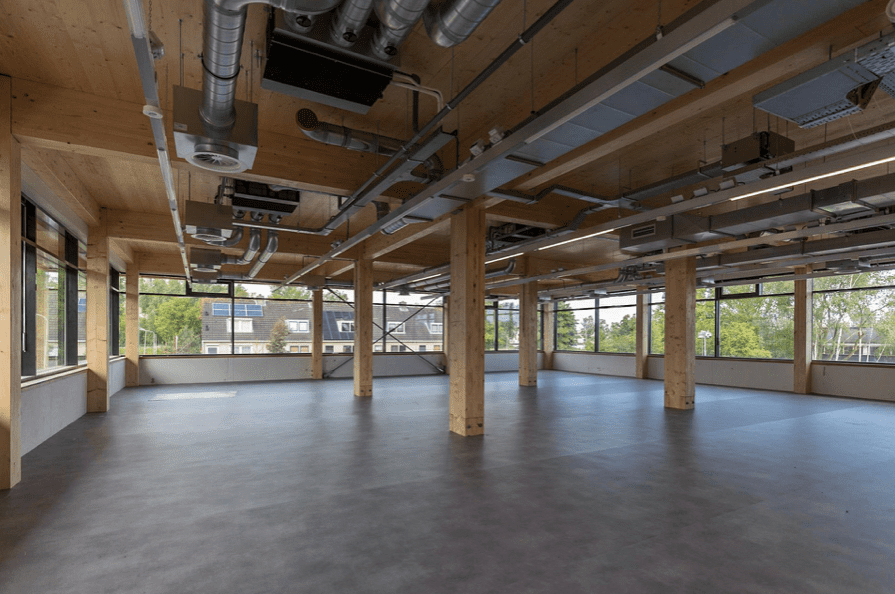 Het nieuwe pand heeft een volledig houten constructie, op de fundering en de begane grond na. Voor de gevel en afwerking zijn circulaire materialen gebruikt. De bouw werd gedaan door Woody Building Concepts, een bedrijf gespecialiseerd in het ontwerpen en bouwen van houten bedrijfspanden.