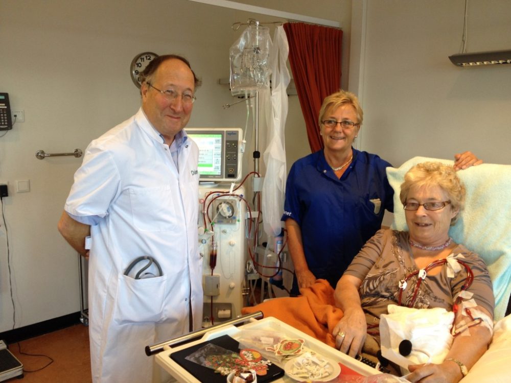 Sindsdien heeft haar leven een drastische wending genomen. Bhageloe, woonachtig in Utrecht, dialyseert nu drie keer per week in dialysecentrum Dianet. De dialysebehandeling, die de functie van de nieren overneemt zodat het bloed gezuiverd wordt van afvalstoffen, duurt ongeveer 3,5 uur. Daarna is ze doodmoe. “Ik werkte 34 jaar bij een bakkerij en ik ben bang dat ik dat werk nooit meer kan doen. Het gaat nu steeds beter met me maar in het begin kon ik alleen maar slapen.”