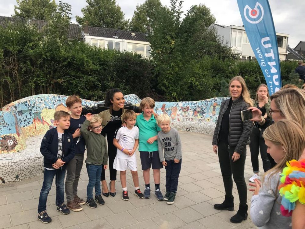 Vrijdagmiddag werd het plein officieel geopend door oud-leerling en zangeres Romy Monteiro. Samen met de schoolmascottes Ody en See knipte zij het lint door, waarna er ruim de tijd werd genomen voor foto’s.