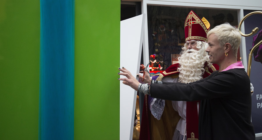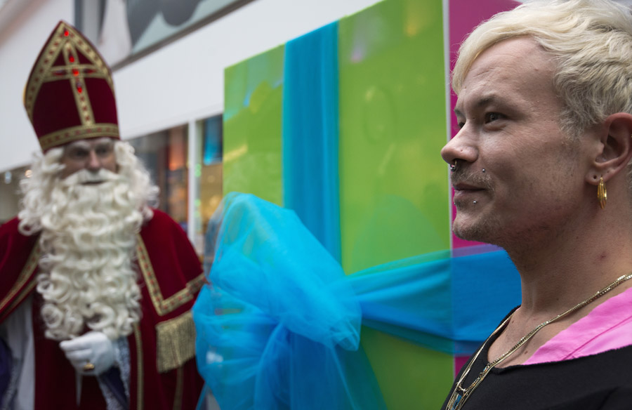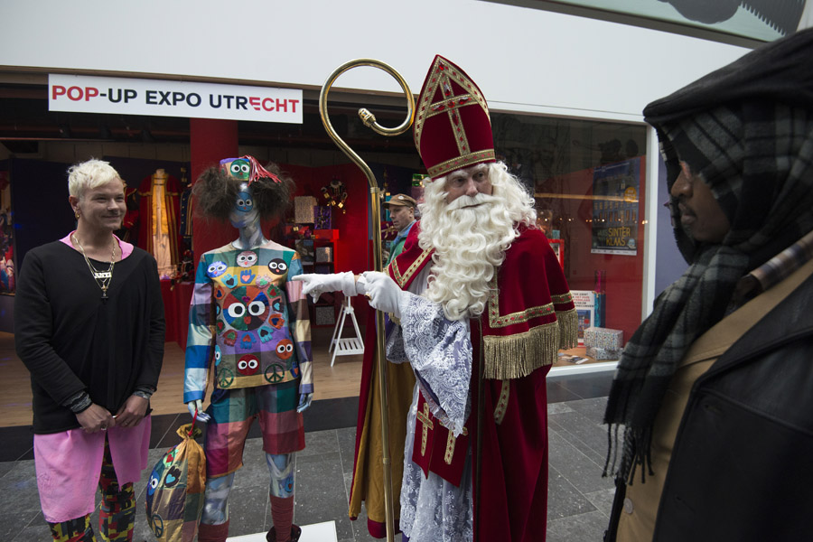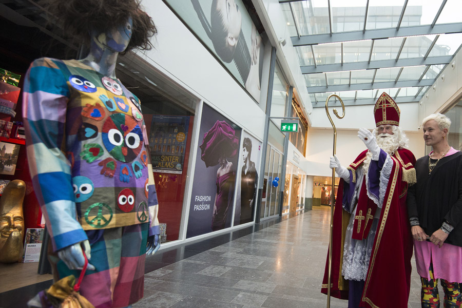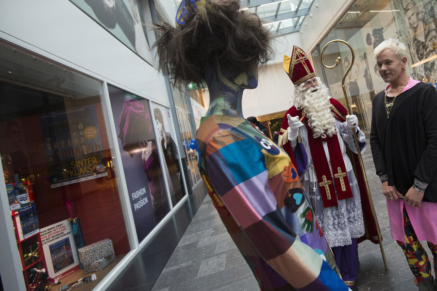 De discussie rondom Zwarte Piet gaat ook niet aan modeminnend Nederland voorbij. Modeontwerper Bas Kosters gaf vandaag op Hoog Catharijne een nieuw ontwerp van het Zwarte Pietenpak aan Sinterklaas. De goedheiligman gaf zelf aan de discussie rondom Zwarte Piet niet te volgen, maar hij vond het ontwerp wel erg mooi.