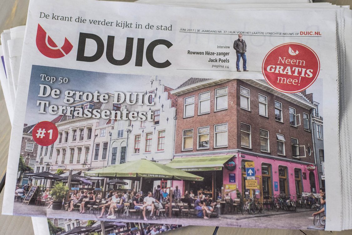 De 37e editie van de DUIC krant is uit en ligt weer verspreid door de hele stad. In deze krant, en ondertussen ook al online, staat de grote DUIC Terrassentest 2017. Ook spraken wij met Hans Kuperus. Hij legde in mei na dertig jaar zijn functie neer als chef-kabinet. We vroegen ons verder in de krant af of Utrecht eigenlijk wel genoeg terrassen heeft, we bekeken de bouwontwikkelingen bij de Jaarbeurszijde van Utrecht Centraal en we spraken met Rowwen Hèze-zanger Jack Poels. Uiteraard schreef Arjan den Boer ook weer een verhaal en gingen Jette en Jildou weer koffie drinken. Dit en nog veel meer is te lezen in de gratis DUIC krant.
