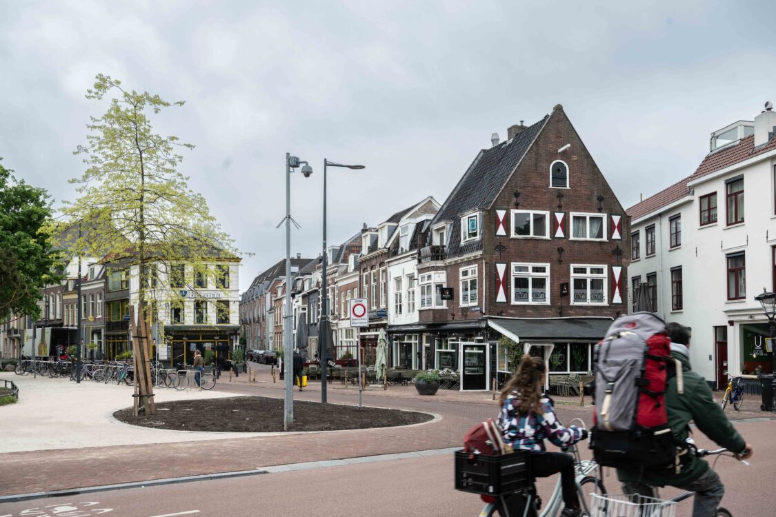 De werkzaamheden voor de deur van cafés de Potdeksel, de Stad, en Tilt zijn klaar. De parkeerplaatsen zijn verdwenen en er is meer ruimte voor fietsers en voetgangers.