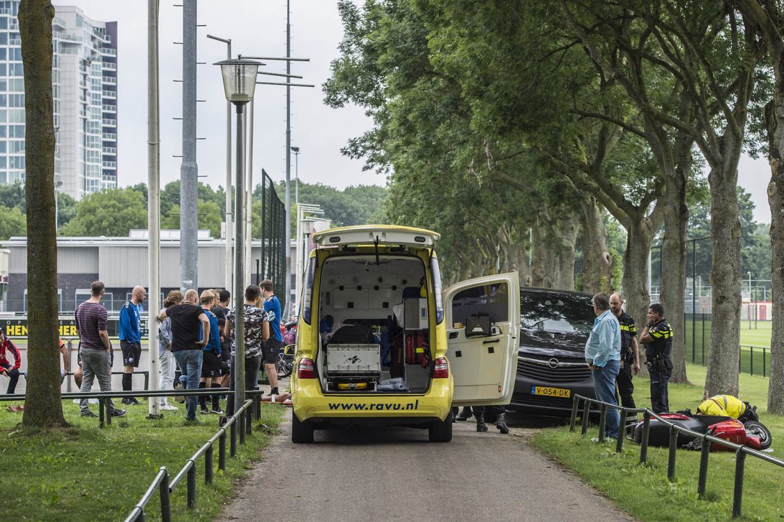Update 14.45 uur. De politie meldt dat het gaat om een 19-jarige jongen die Leeuwin aanreed. De scooter waarop hij reed was bovendien gestolen.