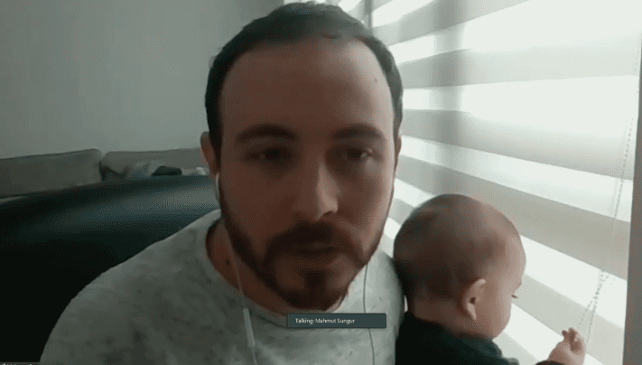 Mahmut Sungur van DENK zorgt ook nog voor een glimlach. Voorzitter Podt kondigt zijn interruptie aan met de woorden: “We gaan naar meneer Sungur, maar die is een beetje aan het multitasken, zie ik”, waarop Sungur in beeld verschijnt met zijn kindje op schoot.