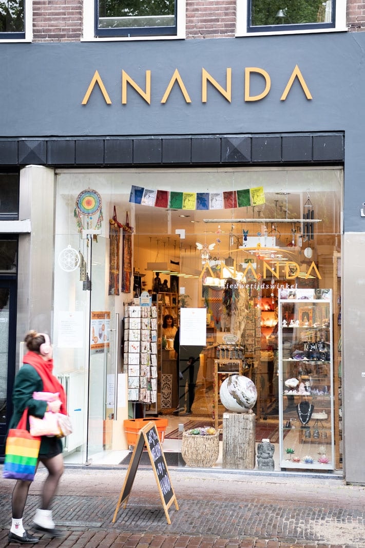 Na 32 jaar sloot De Wijze Kater aan de Mariaplaats vorig jaar de deuren. De winkel was gespecialiseerd in esoterische (spirituele) boeken. Toen Jeffrey en Shirley van Woerkom hoorden over de sluiting, kregen ze het idee om in Utrecht een spirituele winkel te openen. Het stel nam vorig jaar Ananda Nieuwetijdswinkel over in Haarlem. Na 25 jaar gingen de oud-eigenaren met pensioen. Een eigen winkel, dat wilde Shirley heel graag. Jeffrey zegde zijn toenmalige baan op om samen de winkel voort te zetten. Sinds Koningsdag is hun tweede winkel open: hier aan de Oudegracht. ‘Als je me een jaar geleden had gevraagd wat ik nu zou doen, had ik niet gezegd: ik heb twee spirituele winkels.’