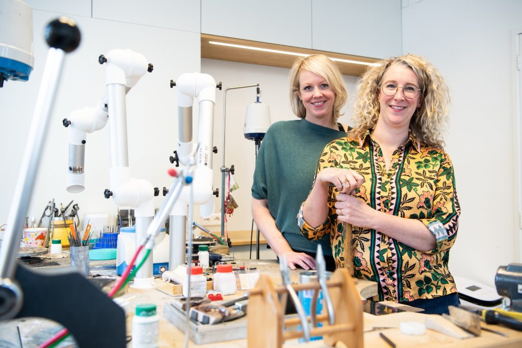 Toen ze allebei dertig waren, hadden ze een atelier aan de Archimedeslaan in een oud schoolgebouw. Ze werkten allebei vier dagen voor een baas. Een dag in de week gingen ze naar het atelier. “We dachten: ‘Wat gaan we doen? Eén dag per week een beetje knutselen, of echt helemaal zelf doen?’” Ze zijn blij dat ze uiteindelijk de sprong hebben gewaagd en voor zichzelf zijn begonnen.