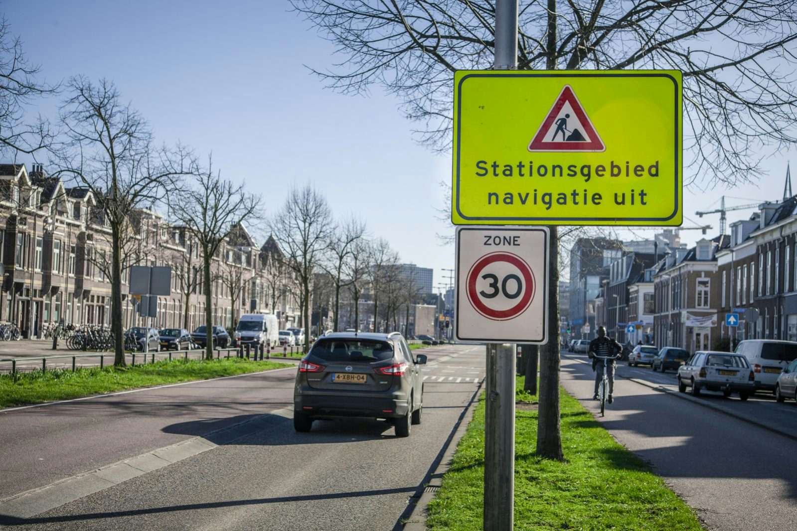 De maximumsnelheid op de wegen in het Utrechtse stationsgebied is teruggebracht naar 30 kilometer per uur. Ook wordt er geadviseerd om de navigatie uit te zetten.