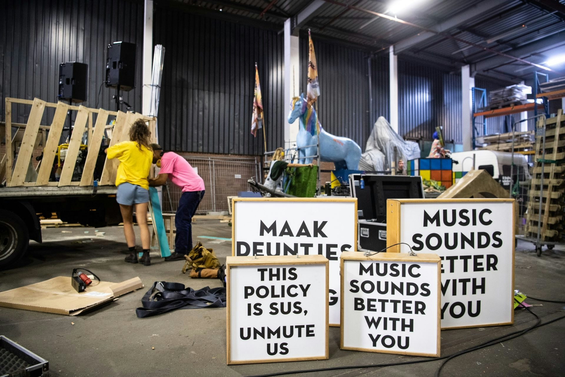 In en rond de stad wordt hard gewerkt aan veertien muziekwagens voor de tweede demonstratie van Unmute Us in Utrecht. Er worden duizenden mensen verwacht op het protest van organisatoren, podia, leveranciers, artiesten, evenementenlocaties én bezoekers. De boodschap is volgens Maurice van de Berkt: “Een directe terugkeer van festivals en een einde aan de willekeur.”