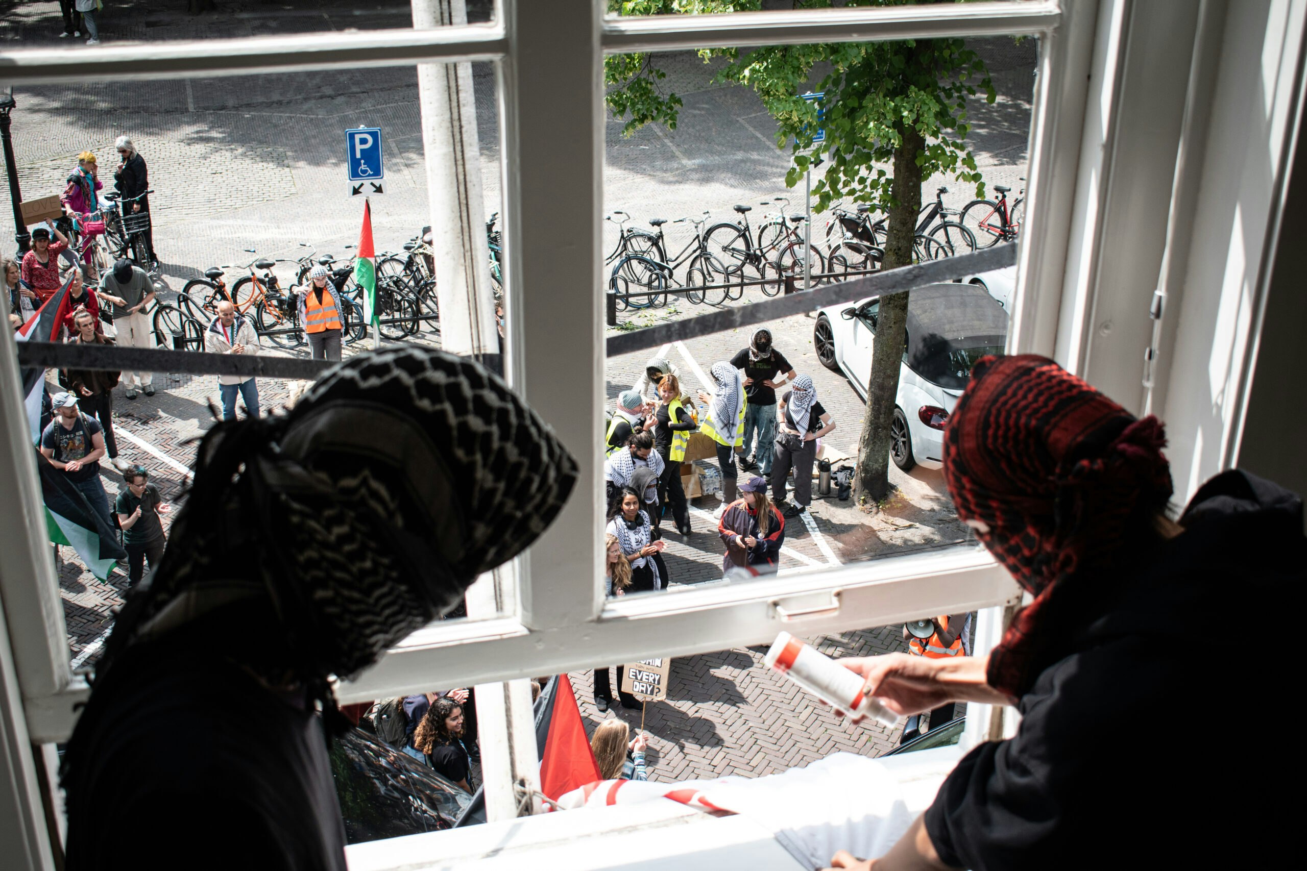 Tientallen pro-Palestinademonstranten hebben dinsdagochtend het pand aan het Janskerkhof 15a bezet. De demonstranten eisen opnieuw dat de Universiteit Utrecht de banden met alle universiteiten en instituties in Israël verbreekt.