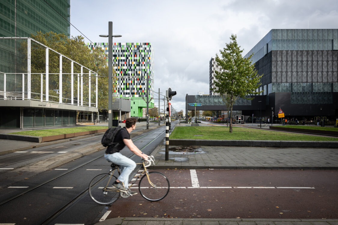 Maar hiervoor ziet men zeker oplossingen. Zo worden er bijvoorbeeld levendige terrassen gecreëerd bij de Genèvelaan evenals een studeertuin op de fietsenkelder naast het Van Unnikgebouw. En aan de noordkant van de weg, bij het Bestuursgebouw en het Van Unnik, ziet Troost ‘potentie’ tot vergroening.