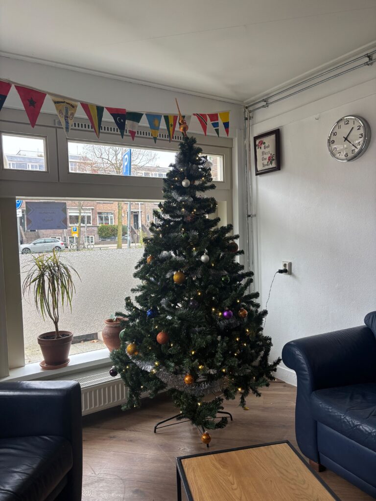 Het overige deel is overgebracht naar Ondiep, waar Buurtmoeder Anja Dorresteijn de gezamenlijke buurtboom optuigt voor mensen die tijdens de feestdagen iemand moeten missen.