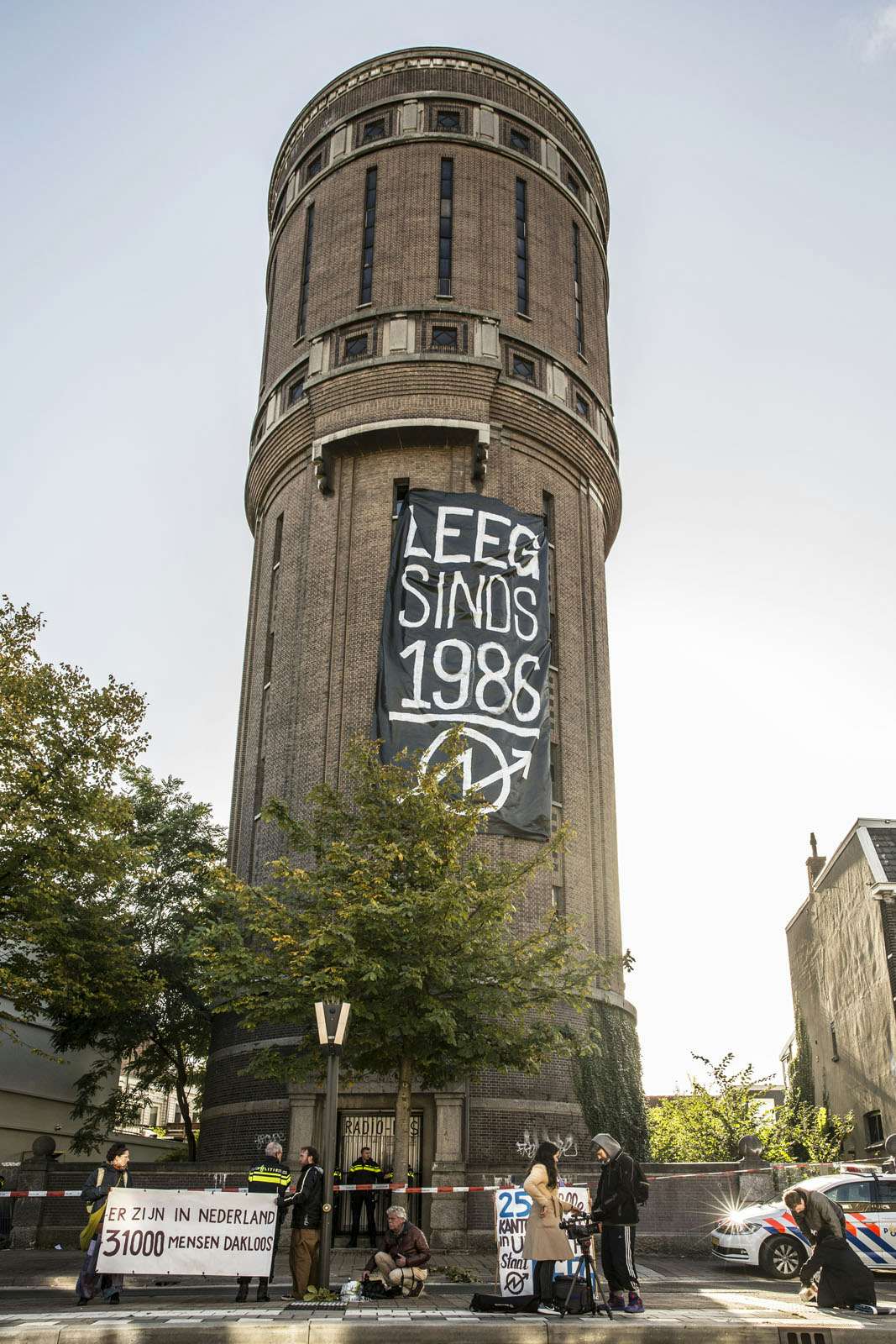 Watertoren Amsterdamsestraatweg weer gekraakt; Veel politie op de been