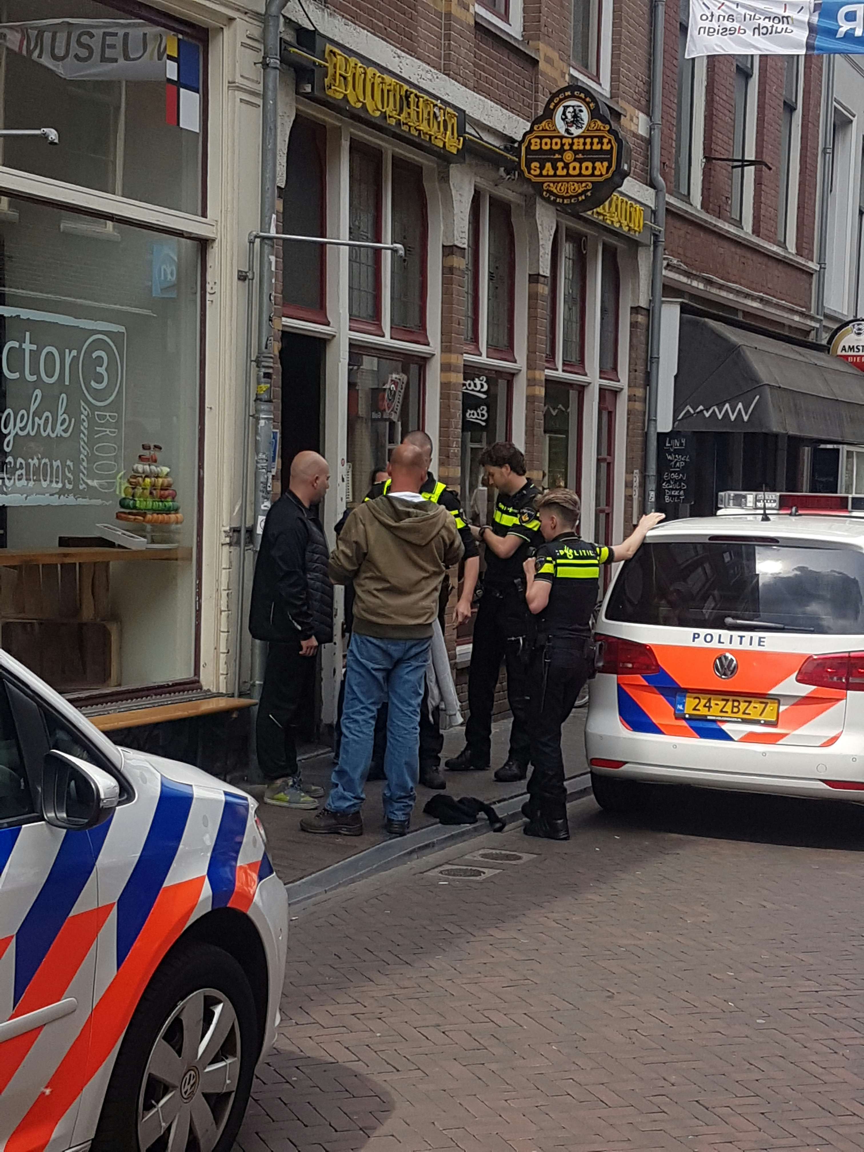 Vijf politieauto’s, een hond en een agent met wapenstok en schild werden zondagnmiddag ingezet vanwege een opstootje in de Boothill Saloon in de Twijnstraat. Achteraf gezien bleek dit machtsvertoon overdreven.