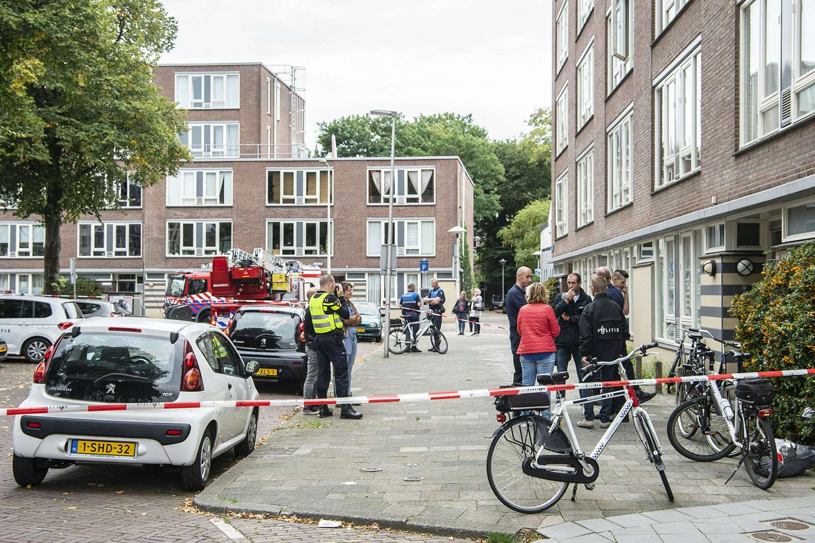 De verdachte raakte gewond aan zijn been en is met een ambulance vervoerd naar een ziekenhuis. In de woning wordt nog onderzoek gedaan.