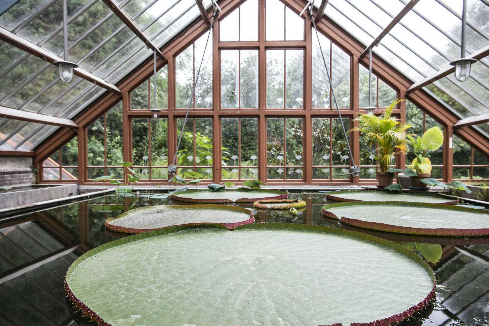 De Victoria Longwood in de Oude Hortus bij het Universiteitsmuseum in Utrecht toont haar gigantische bladeren. De bladeren van de waterlelie kunnen tot wel 20 kilo dragen.