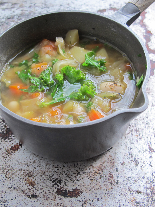 Italianen bewaren de korst van hun Parmezaanse kaas en laten deze mee trekken in de soep. Geeft inderdaad een heerlijke smaak! Je kunt de soep ook serveren met een flinke eetlepel pesto erin (zie recept van vorige week).