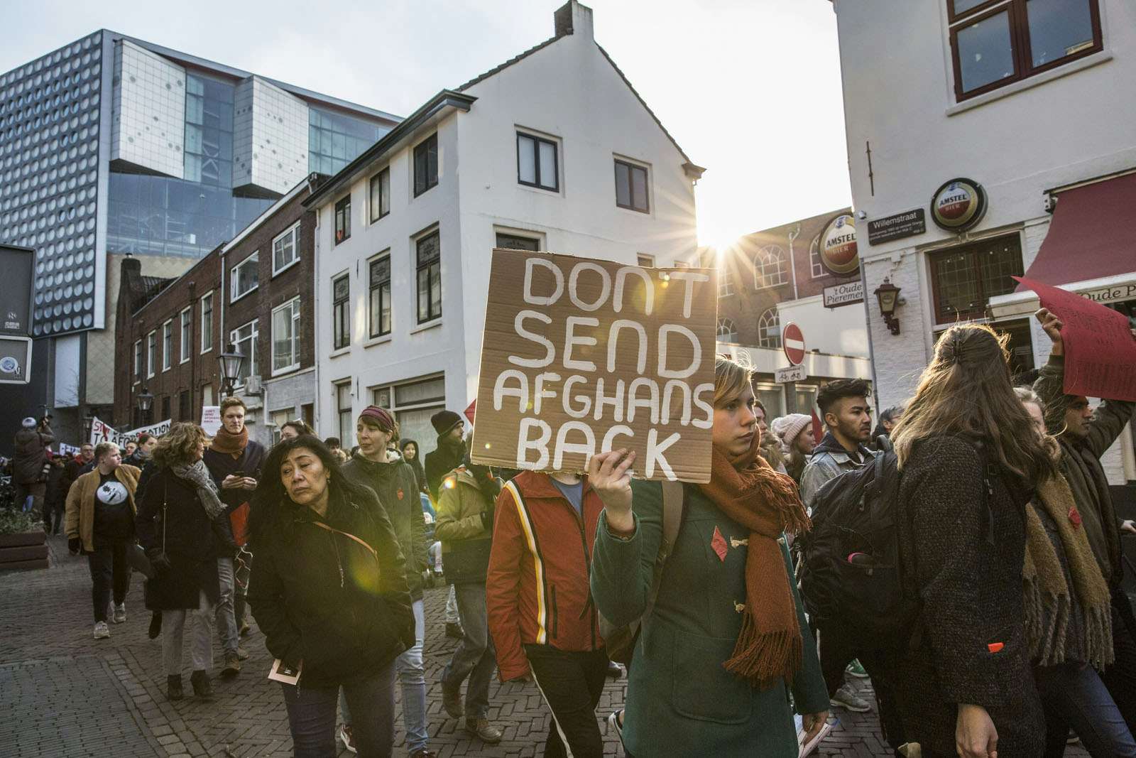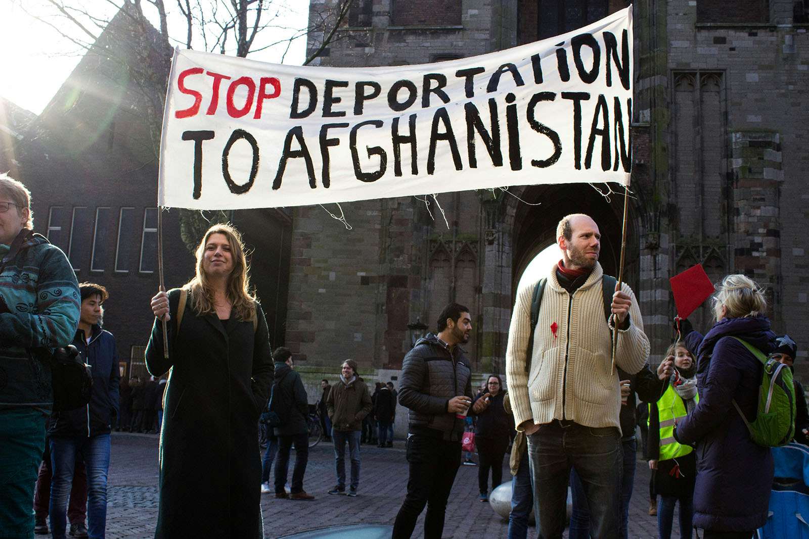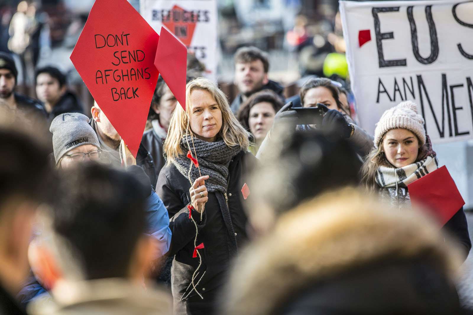 De betogers hadden borden en spandoeken bij zich, en demonstreerden als onderdeel van een Europa-brede protestdag tegen het terugsturen van Afghaanse asielzoekers. Onder andere in Amsterdam, Maastricht, Nijmegen, Warschau, Stockholm en Wenen zijn vandaag protesten. Volgens de betogers is Afghanistan geen veilig land en mogen uitgeprocedeerde asielzoekers dus niet automatisch worden teruggestuurd. Nederland is één van de Europese landen van waaruit uitgeprocedeerde asielzoekers terug naar Afghanistan worden gebracht. Als een Afghaan niet persoonlijk wordt vervolgd, krijgt hij in Nederland geen verblijfsvergunning.