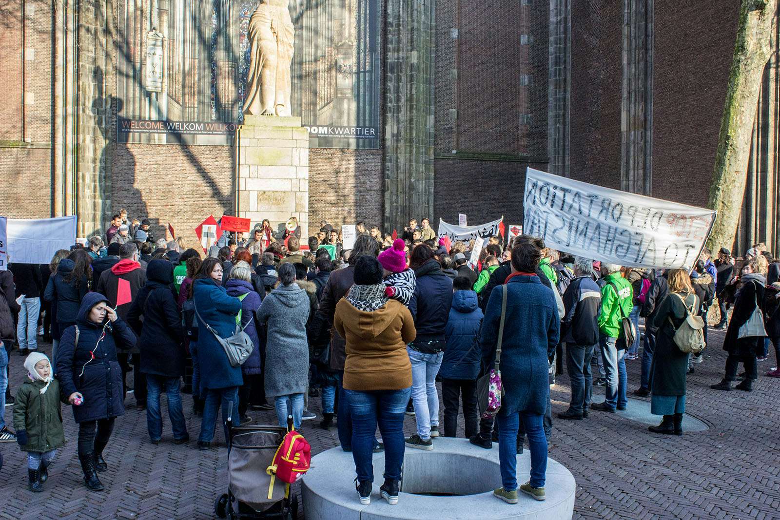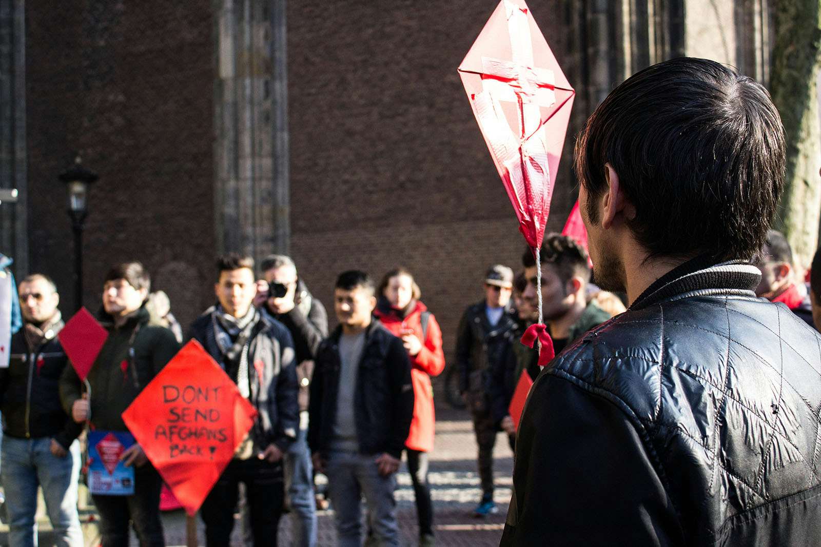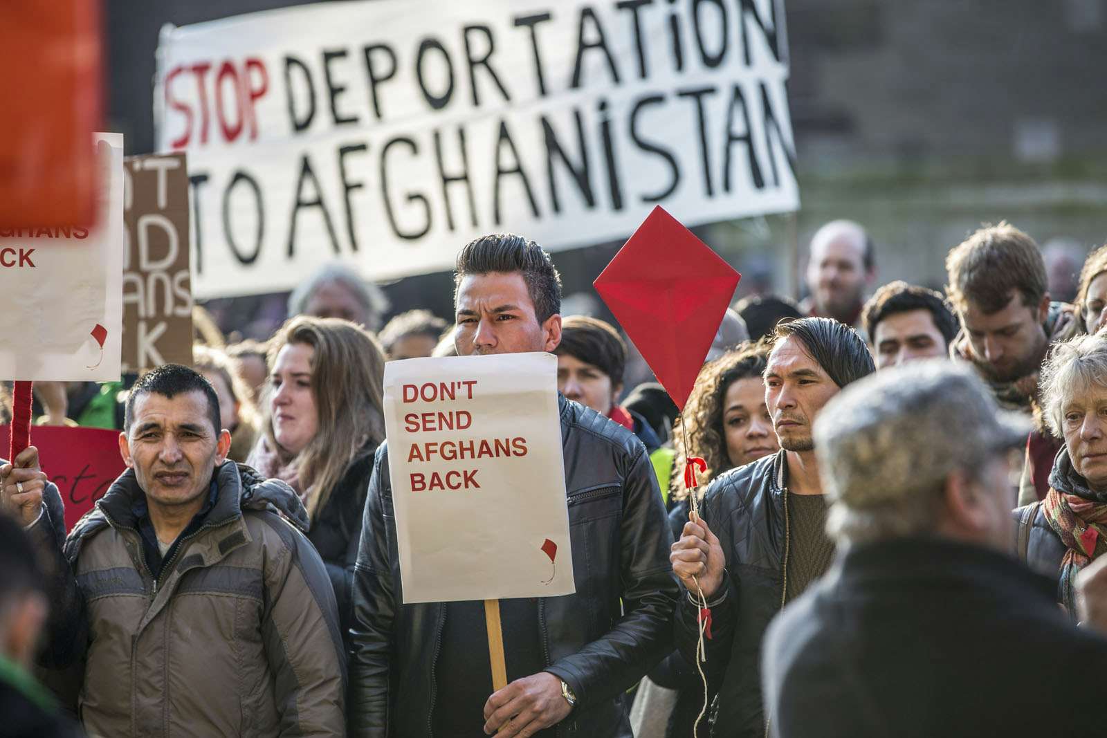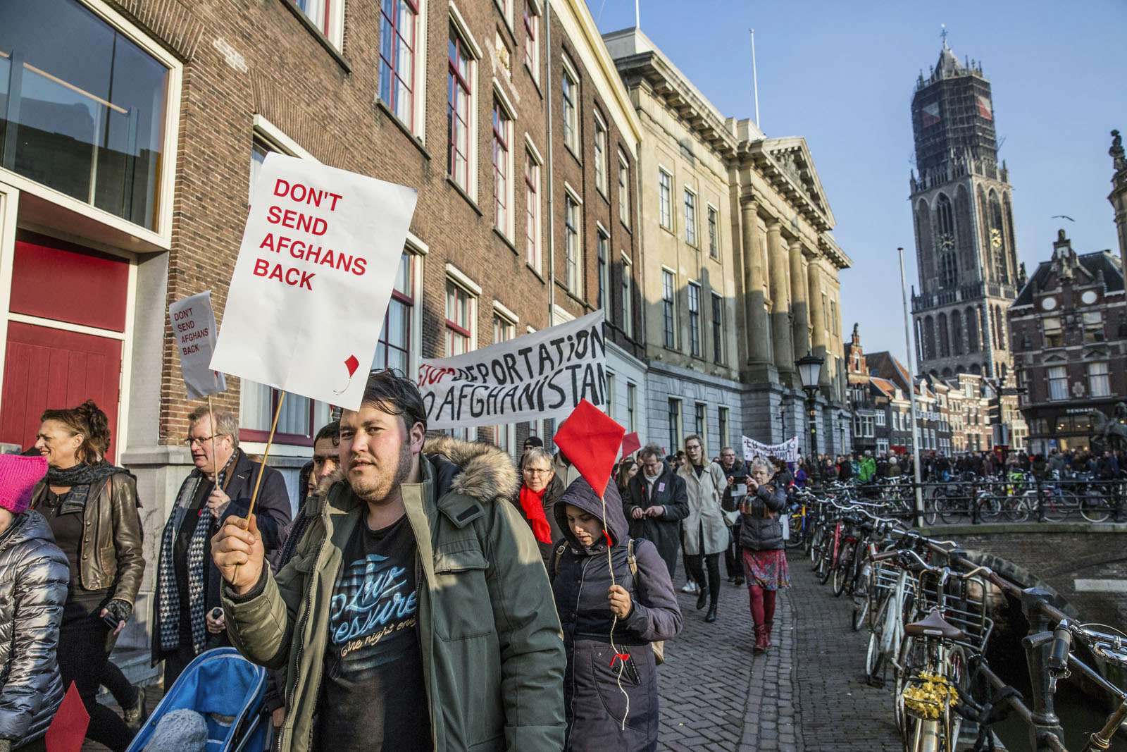 De betogers hadden borden en spandoeken bij zich, en demonstreerden als onderdeel van een Europa-brede protestdag tegen het terugsturen van Afghaanse asielzoekers. Onder andere in Amsterdam, Maastricht, Nijmegen, Warschau, Stockholm en Wenen zijn vandaag protesten. Volgens de betogers is Afghanistan geen veilig land en mogen uitgeprocedeerde asielzoekers dus niet automatisch worden teruggestuurd. Nederland is één van de Europese landen van waaruit uitgeprocedeerde asielzoekers terug naar Afghanistan worden gebracht. Als een Afghaan niet persoonlijk wordt vervolgd, krijgt hij in Nederland geen verblijfsvergunning.