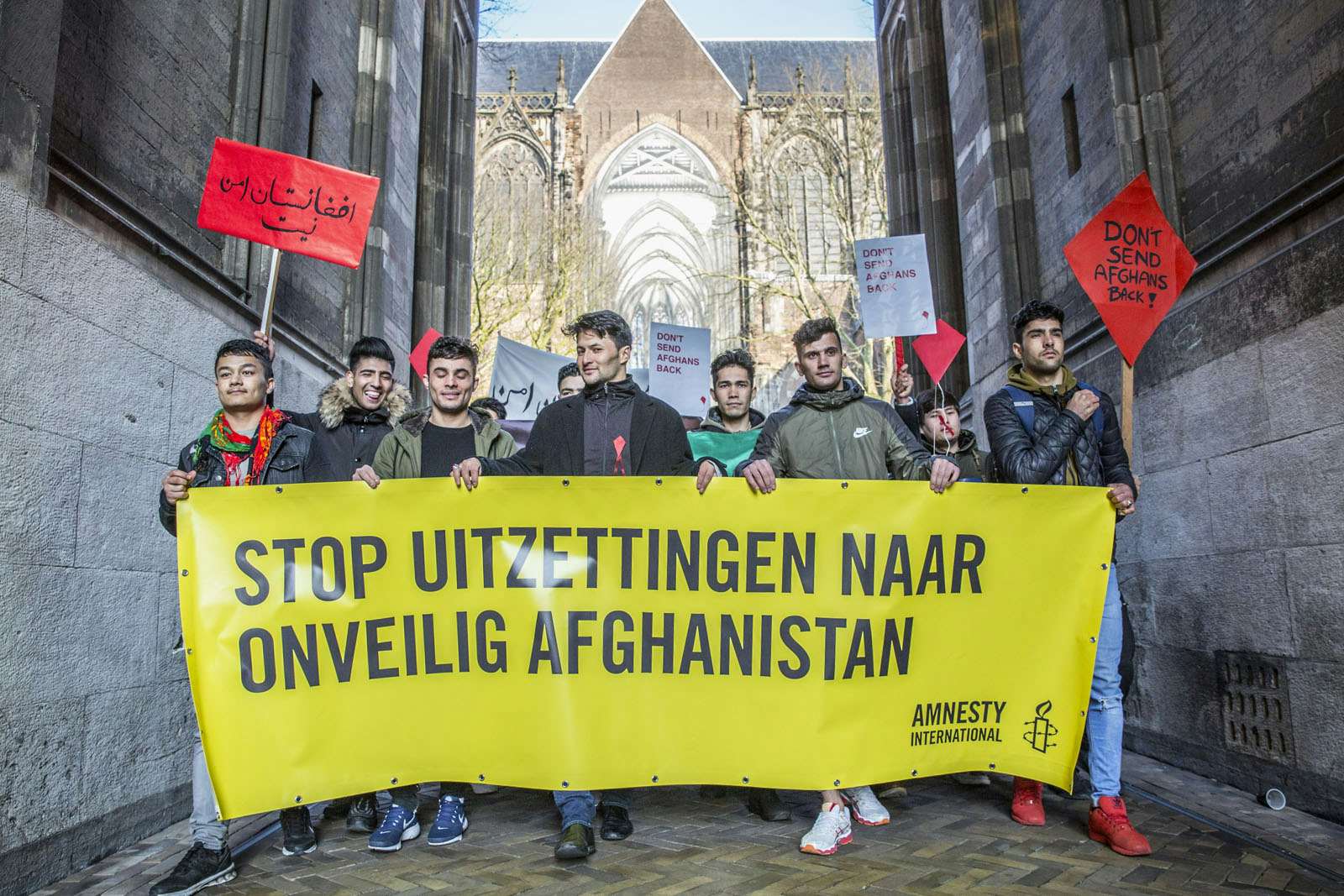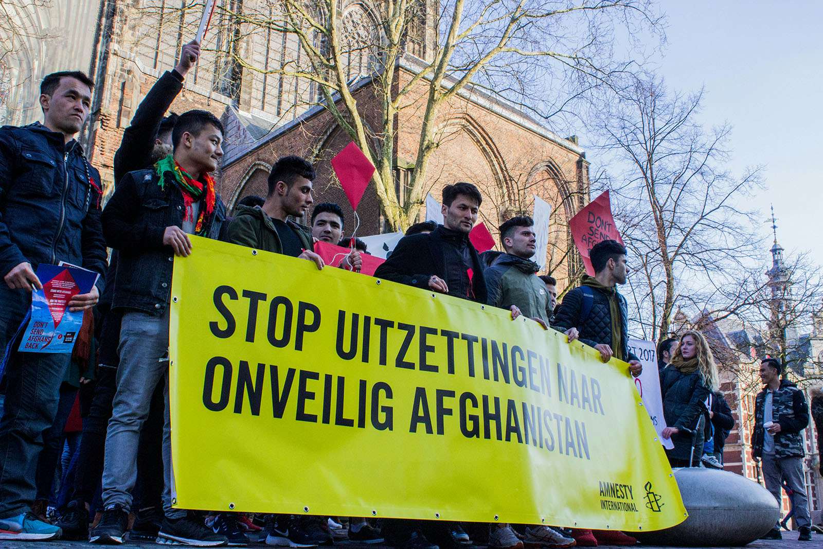 Tijdens de demonstratie sprak onder andere Eduard Nazarski, directeur van Amnesty International. Daarna zetten de demonstranten koers richting het loket van de Immigratie- en Naturalisatiedienst aan de Bergstraat 58. Volgens Amnesty International is het terugsturen van Afghaanse asielzoekers in strijd met het internationaal recht. De organisatie wil dat overheden hun beleid wijzigen en asielzoekers niet langer terug naar Afghanistan sturen.