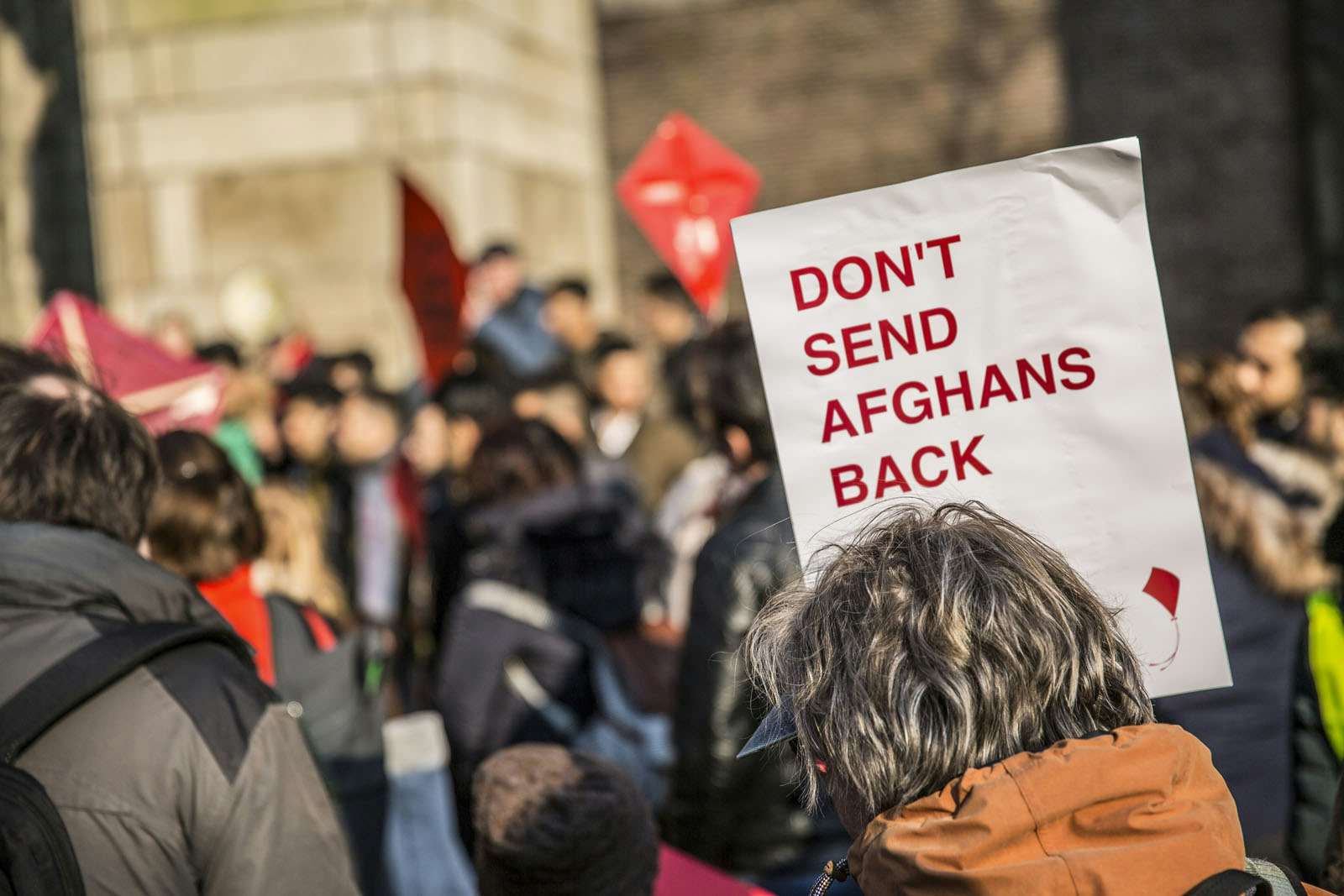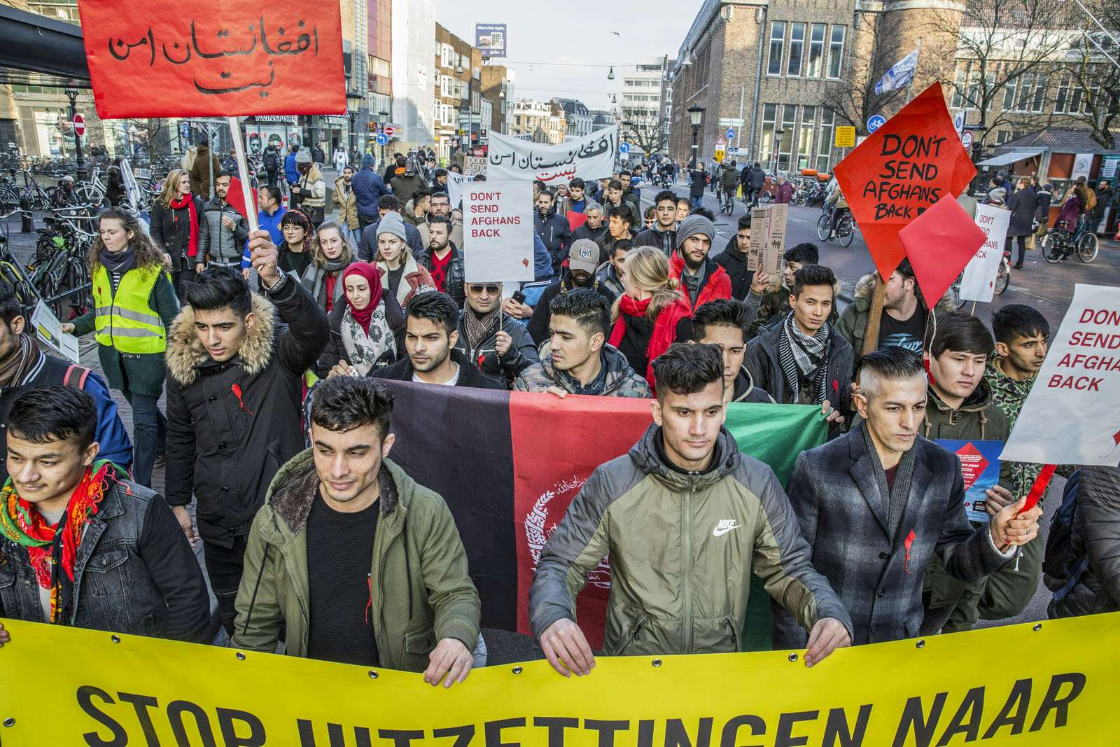 Honderden betogers hebben zondagmiddag geprotesteerd tegen het terugsturen van Afghaanse vluchtelingen.