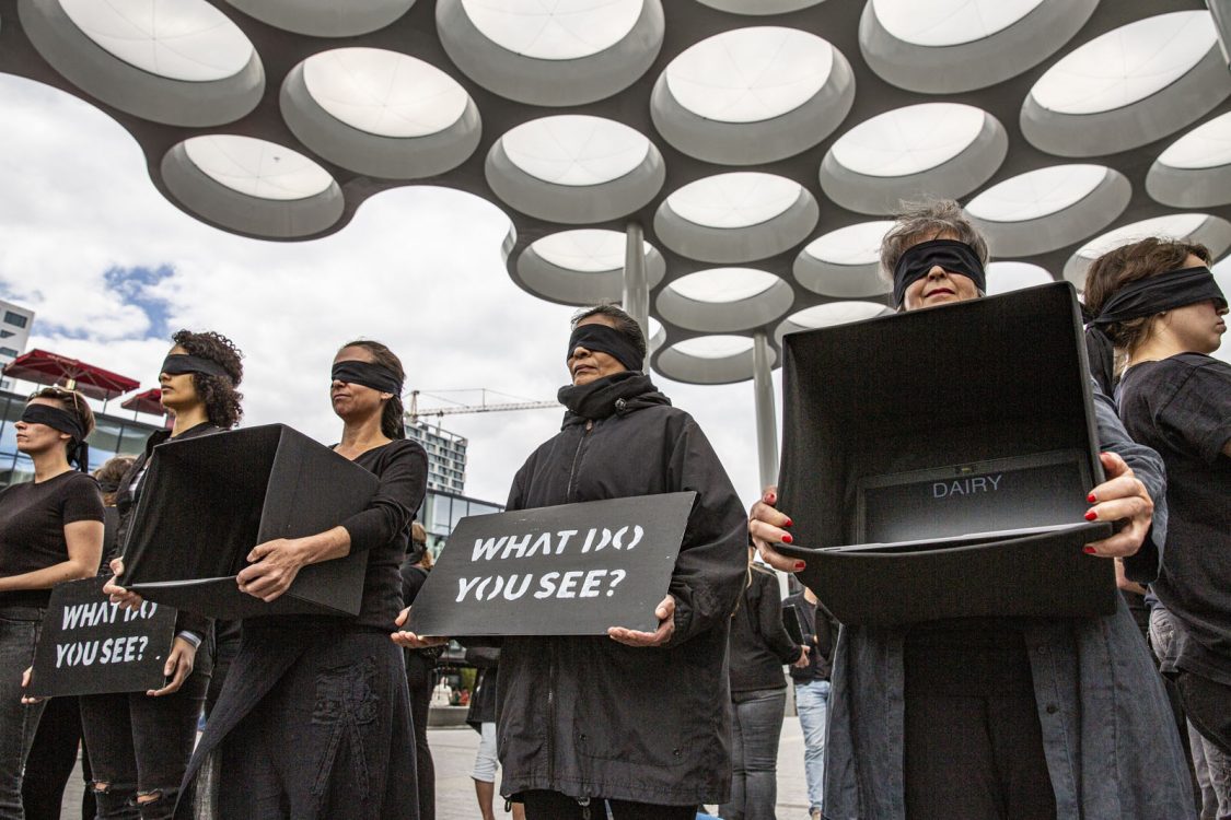 Tijdens het protest werd dan ook aandacht gevraagd voor de wereldwijde positie van dieren in gevangenschap. Sommige demonstranten droegen een scherm waarop heftige beelden van bijvoorbeeld een slachthuis of een veetransport was te zien.