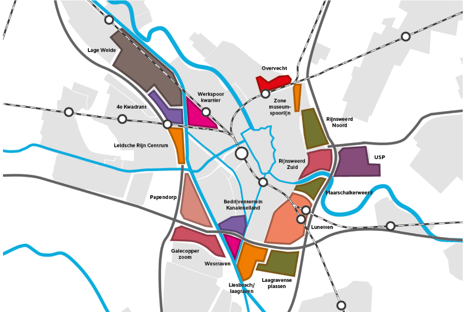 In het ontwikkelperspectief dat Rijk, provincie en gemeenten opstelden, wordt gesproken van de ‘grote U’. Het is een aaneenschakeling van gebiedjes aan de west-, zuid- en oostkant van de stad, waar de overheden kansen zien om de groei van de stad op te vangen. Zo kunnen op Lage Weide en in het Werkspoorkwartier meer bedrijven worden gevestigd en is er op Papendorp ruimte voor woningen.