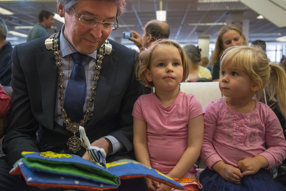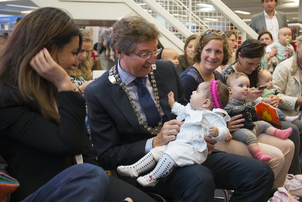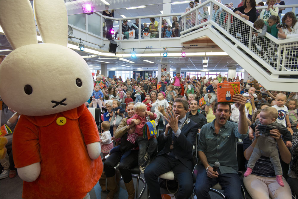 In de centrale bibliotheek is vandaag succesvol een voorleesrecord voor baby’s gevestigd. Ruben Nicolai, ambassadeur van het Jaar van het Voorlezen, vertelde aan de hand van het boekje Nijntje en de Wilde Dieren een verhaal aan 327 baby’s. Het record is voorgelegd aan het Guinness World Records. Het startsein voor de recordpoging werd gegeven door burgemeester Aleid Wolfsen: “Ik vind het geweldig om hier te zijn. Voorlezen is belangrijk en ik maak hier dan ook graag tijd voor vrij.”