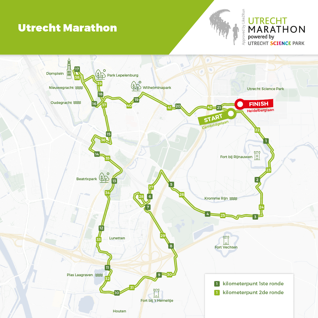 De start en finish van alle disciplines is op het Utrecht Science Park en vervolgens rennen de deelnemers richting de stad. Vanwege het evenement worden wegen afgesloten en zijn er op verschillende plekken langs het parcours oversteekpunten gemaakt. Deze punten zijn hier te vinden.