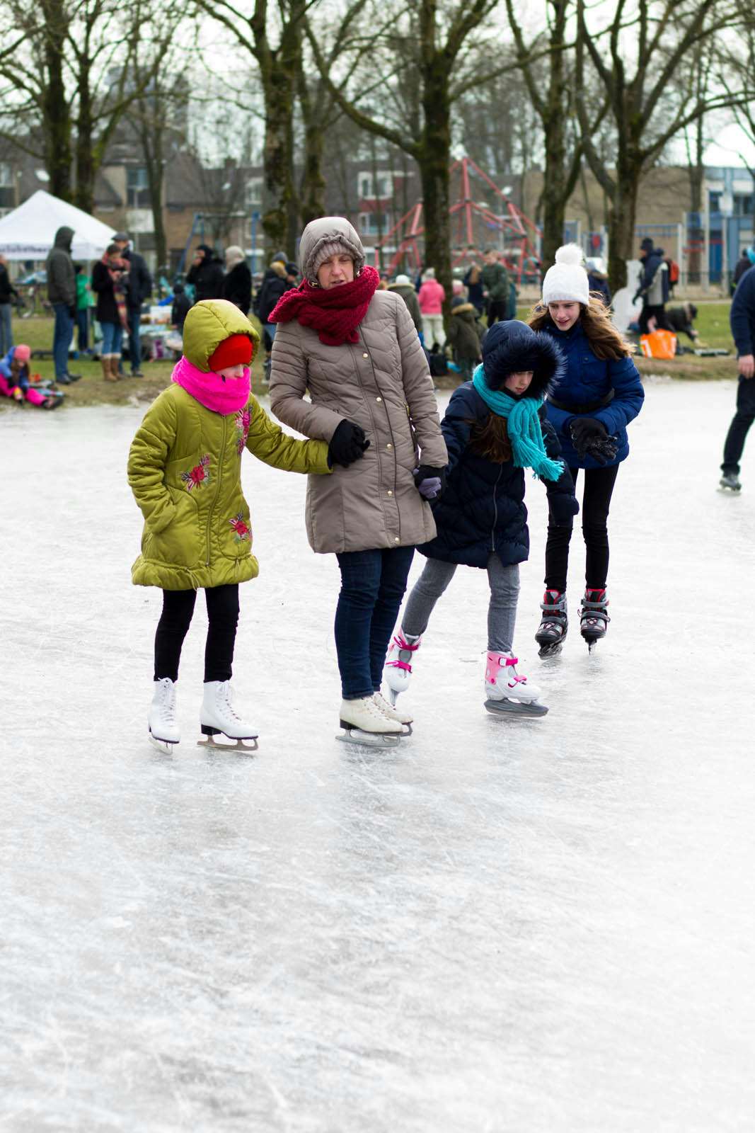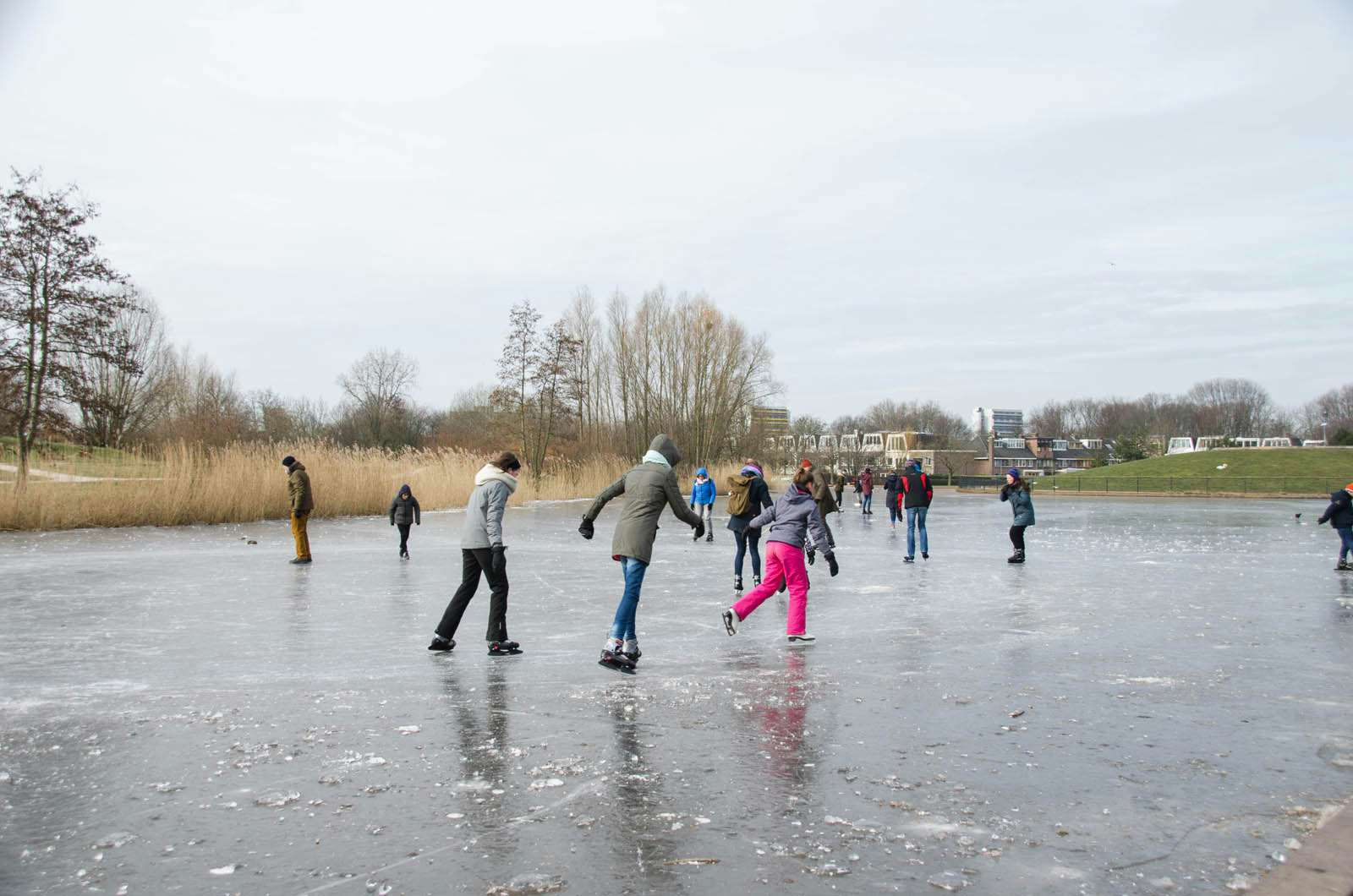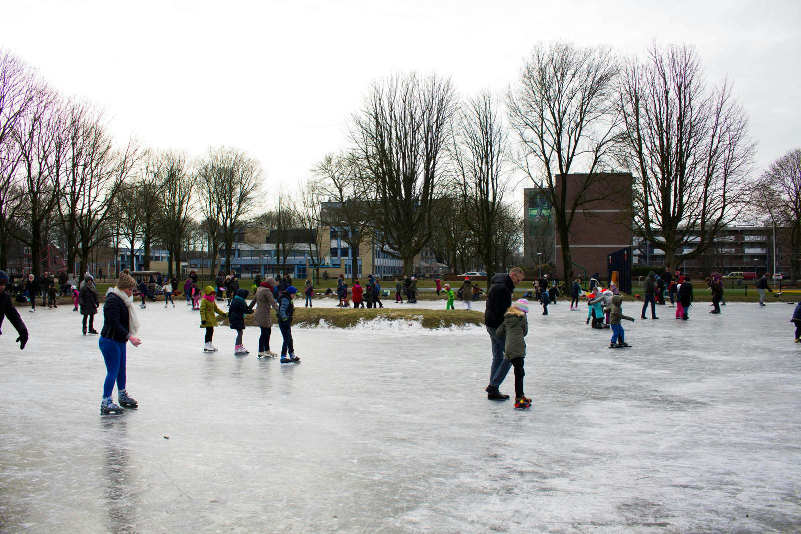 Het is voor het eerst sinds de aanleg van de ijsbaan in Overvecht, 2 jaar geleden, dat er geschaatst kan worden. De hele dag door waren er dan ook tientallen mensen aanwezig. De schaatsbaan is vandaag nog tot 22.00 uur open.