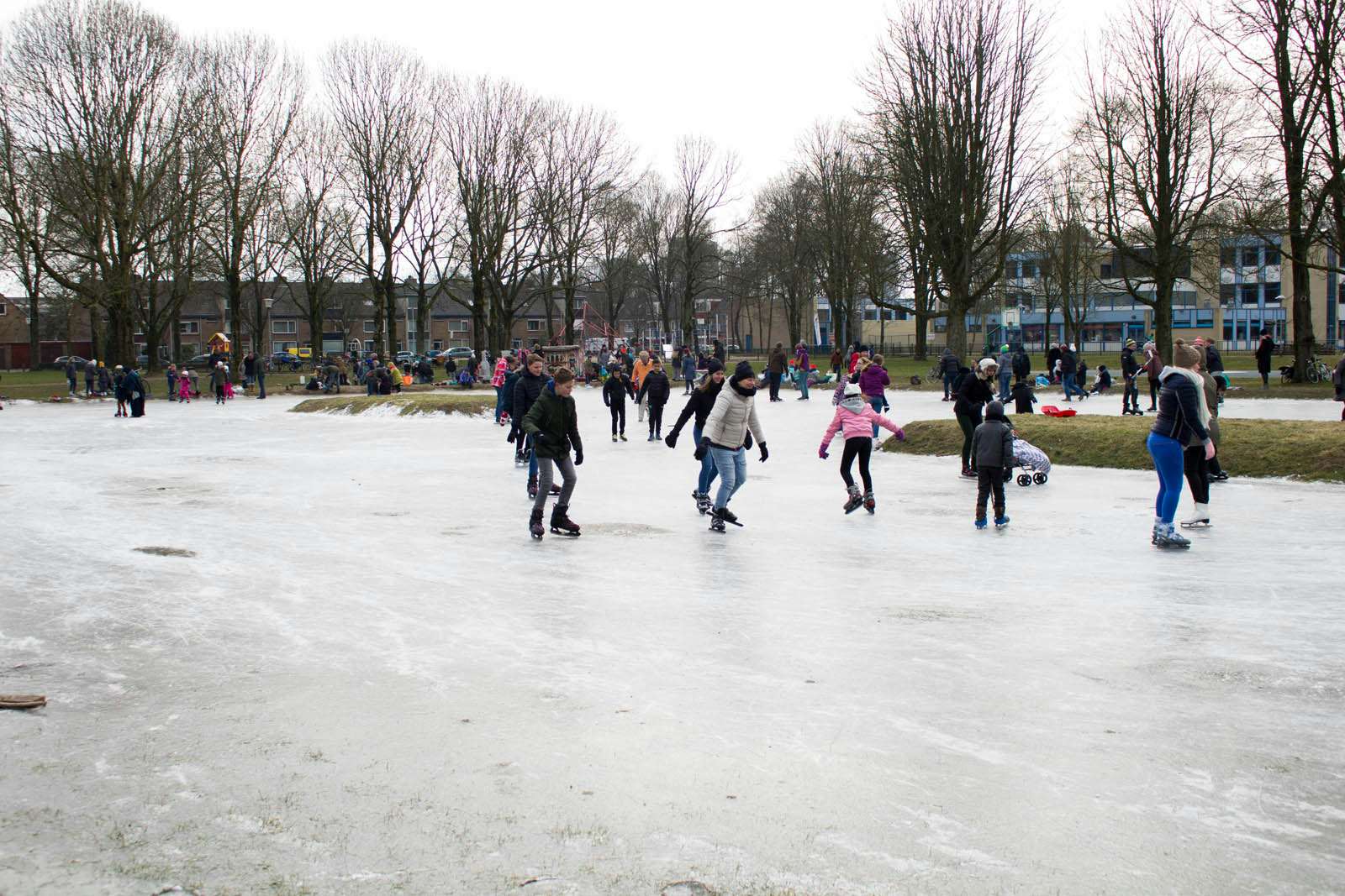 Het water in het Griftpark is ook dichtgevroren, ook daar zijn veel bezoekers aanwezig. Daarnaast werd er vandaag ook geschaatst op het ondergelopen Schimmelplein en op andere verschillende wateren in Utrecht.