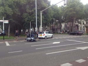De motorrijder reed vanuit de richting van de Burgemeester Reigerstraat. Hij ontkent zelf door rood te zijn gereden. De politie is ter plaatse gekomen. Er zijn geen gewonden gevallen, maar beide voertuigen raakten wel beschadigd. De politie noemt het daarom een verzekeringskwestie.
