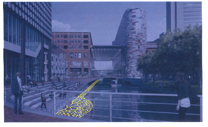 In het water van de singel komt een lichtinstallatie die de oude kasteelmuur van Vredenburg gaat tonen. Tussen TivoliVredenburg en het Poortgebouw komen er lampen op 1,5 meter diepte. Aankomend voorjaar moet het kunstwerk af zijn.