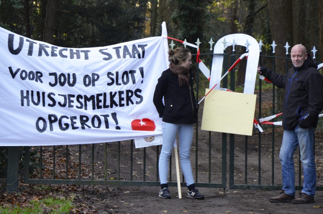 De Utrechtse SP heeft gisteren een bezoek gebracht aan het huis van Marcel van Hooijdonk. De fractie hing een groot slot op de toegangspoort naar het landhuis van de beruchte huisjesmelker met de tekst: “Utrecht staat voor jou op slot! Huisjesmelkers opgerot!”