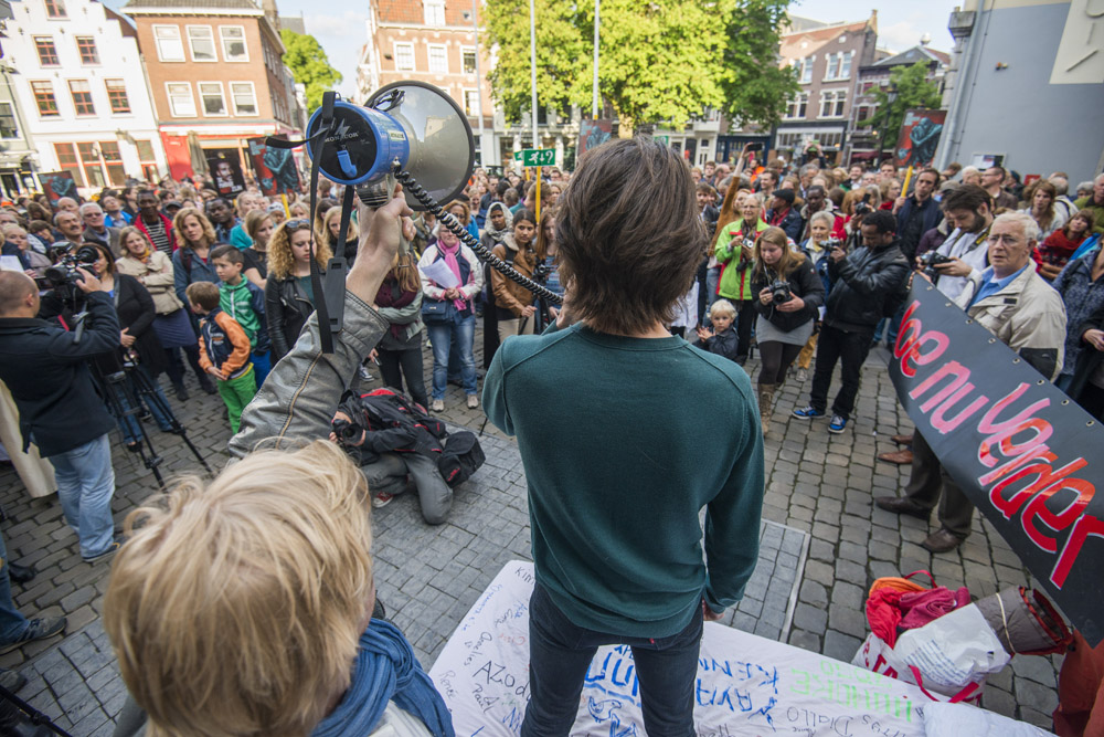 Meer dan 150 mensen demonstreerden gisteravond op het Stadhuisplein voor behoud van de opvang uitgeprocedeerde asielzoekers. Rutger Oolbekking, initiatiefnemer van de nachtopvang Toevlucht, heeft tijdens de protestactie een petitie overhandigd aan wethouder Margriet Jongerius.