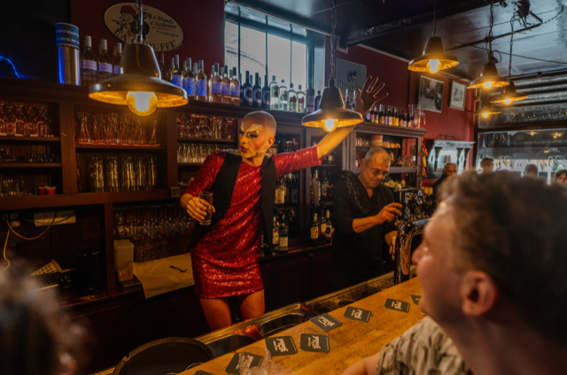 Hoewel de prijsuitreiking plaatsvond in Hofman, speelde Drag Me Home in Café Binnen Best aan de Biltstraat. De ouderwetse, huiskamerachtige sfeer van het café stond in scherp contrast met Bouma’s uitbundige glitterperformance. Maar het was juist dit spanningsveld dat hem aantrok. “Ik wilde per se niet in een queerbar optreden, dat heb ik expliciet gevraagd aan de organisatie van het festival,” legt Bouma uit. Zijn keuze bleek een succes.