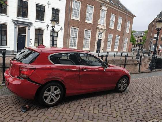 Ik begrijp het misschien niet goed? Je vernielt een auto op de Plompetorengracht en rijdt dan door tot in de Domstraat? En vervolgens is het met hulp invullen van een schadeformulier voldoende?