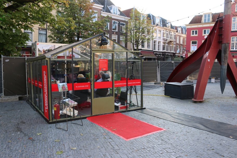 Oorspronkelijk was er plek voor drie tot vijf mensen in de kas op de Neude: “Ik denk dat veel mensen het een beetje onderschat hebben. Iedereen kan wel eens een lekker avondje bankhangen, maar zoveel uur achter elkaar dat is toch heel anders,” vertelt Sasja Woutersen, medewerker van het Nederlands Film Festival.