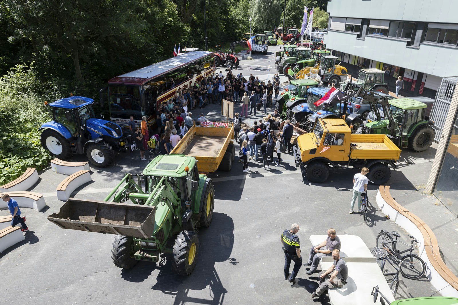 Tientallen boeren kwamen dinsdag naar het parkeerterrein bij stadion Galgenwaard in Utrecht om hun ongenoegen te uiten over de stikstofplannen van het kabinet. Zij gingen onder andere in gesprek met gedeputeerden van de provincie en kiepten een aanhanger met aarde op de grond.