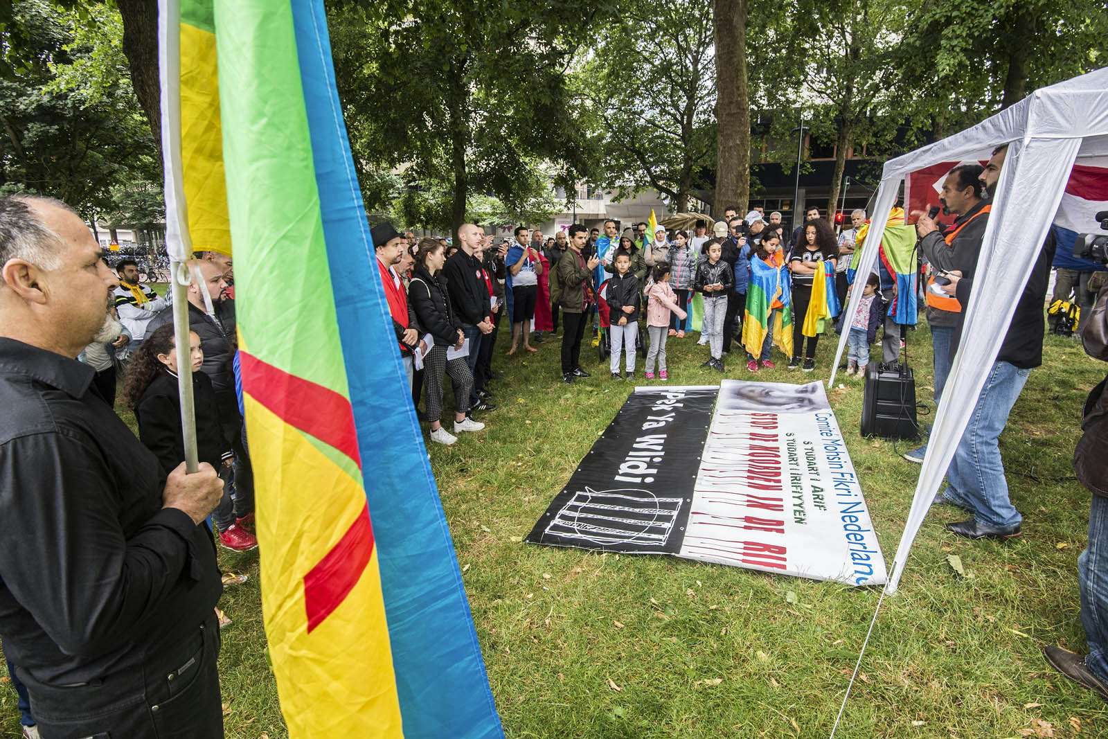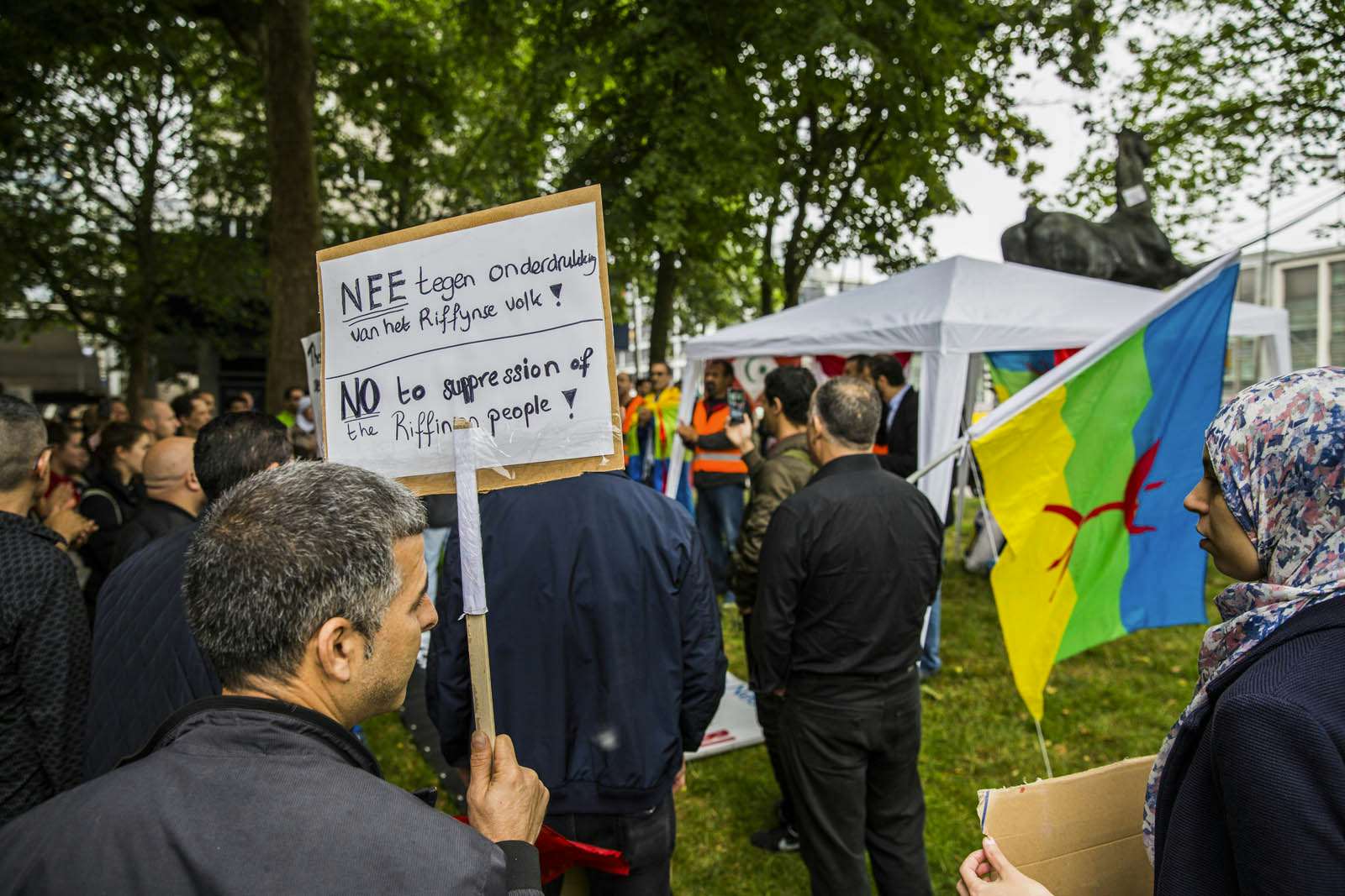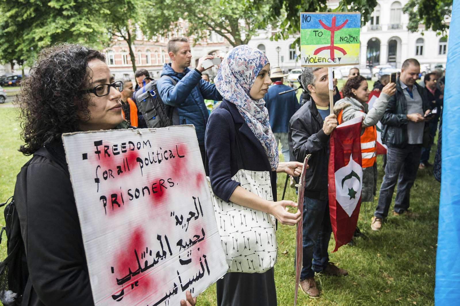 Tientallen Marokkaanse Nederlanders hebben vandaag gedemonstreerd in het Moreelsepark in Utrecht om aandacht te vragen voor alle politieke gevangenen in Noord-Marokko en het onrecht wat volgens hun de bevolking wordt aangedaan in het Rif-gebied.