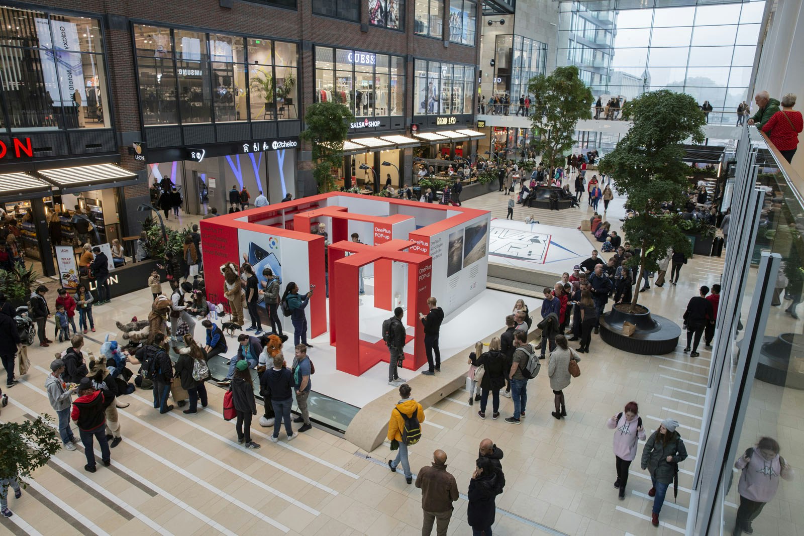 Bij de pop-up store van OnePlus in Hoog Catharijne staan mensen in de rij om de nieuwe smartphone van het Chinese merk te kopen. In de middag bestond de wachtrij uit tientallen personen.