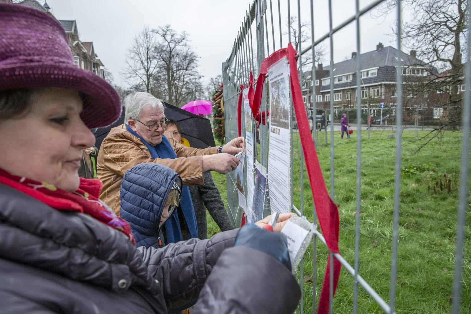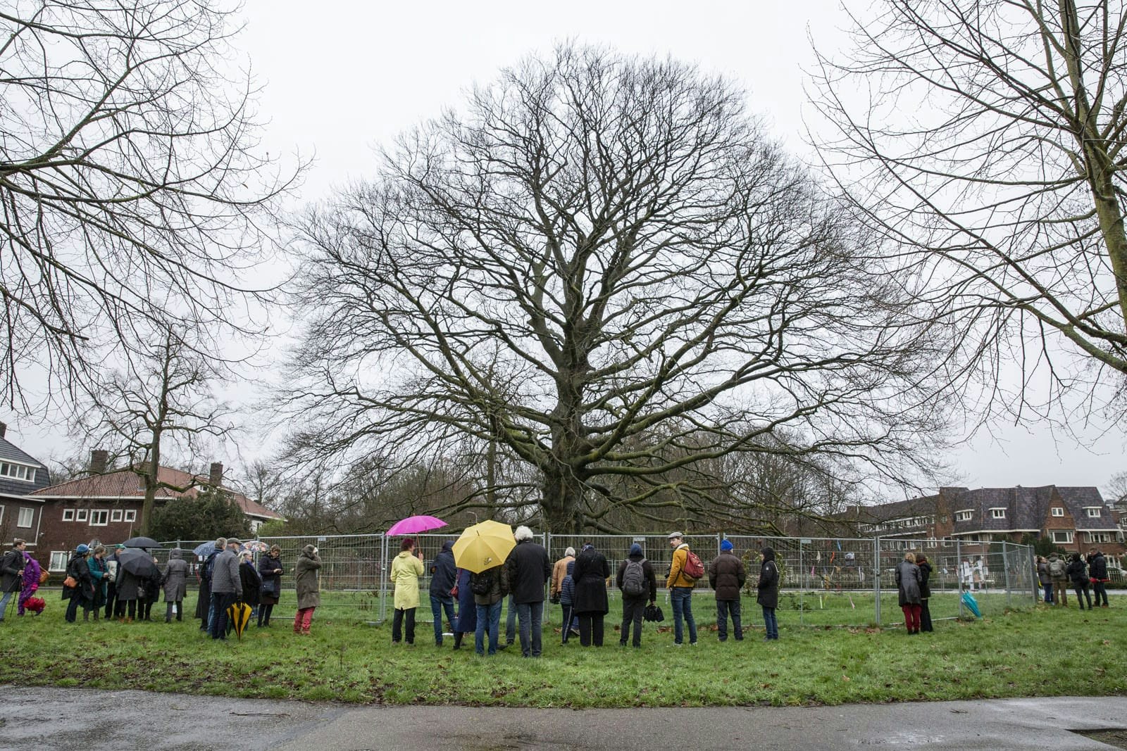 Omdat de beuk ziek is en er takken los kunnen laten staat er al een tijdje een hek van de gemeente omheen. Aan dit hek zijn allerlei versieringen aangebracht. Na de toespraken werden een aantal van deze versieringen verwijderd en in een doos gestopt zodat ze niet in de prullenbak verdwijnen wanneer de boom later deze maand wordt gekapt.