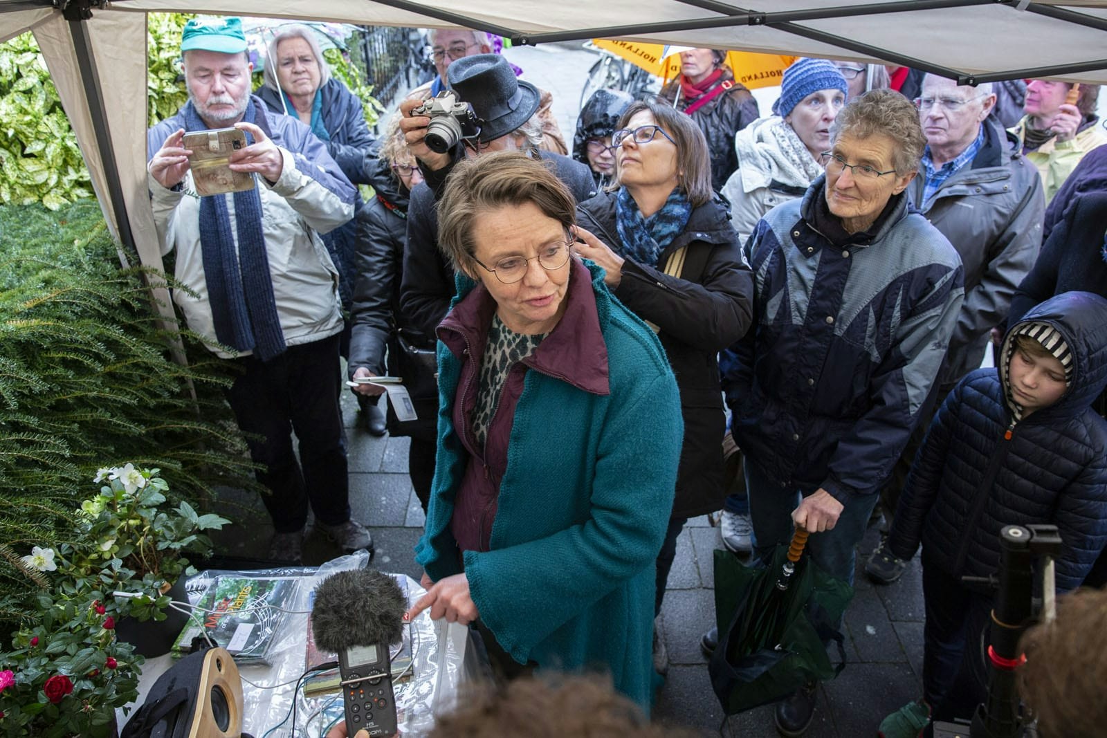 Maarten Schild is één van de initiatiefnemers van de afscheidsbijeenkomst. Hij beet zondagmiddag het spits af. Schild sprak over de iconische Utrechtse rode beuk. “Het is een goede vriend en ik ga hem erg missen. Vandaag staan we stil bij de herinneringen aan de beuk die we met de hele gemeenschap delen.” Vanwege de regen stonden de sprekers onder een partytent en het publiek stond daaromheen.